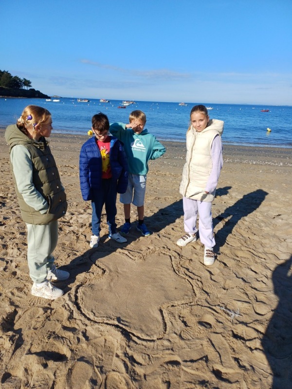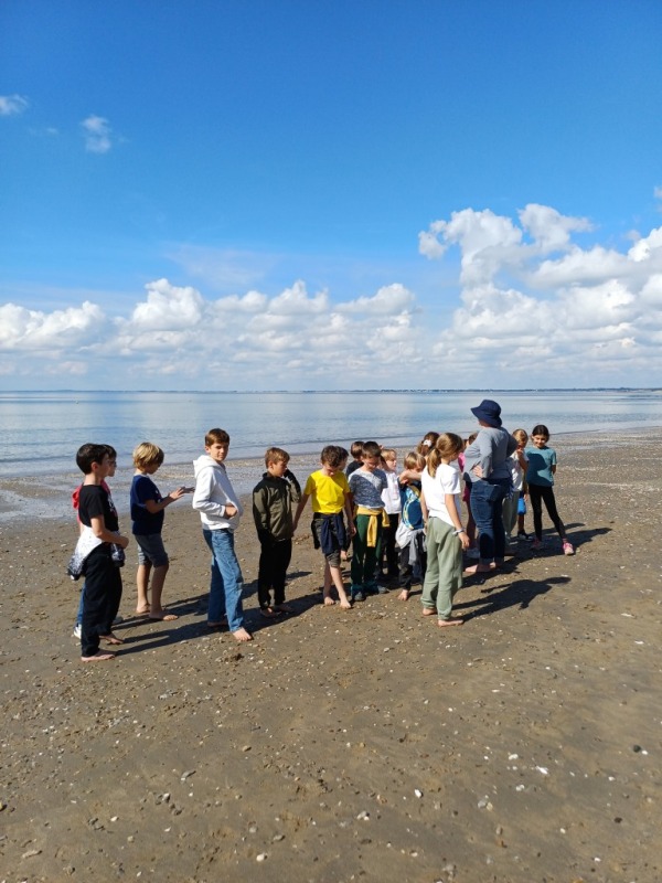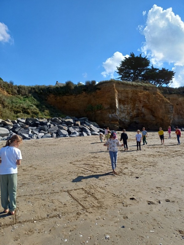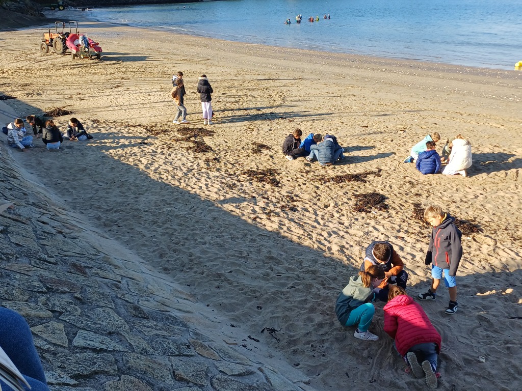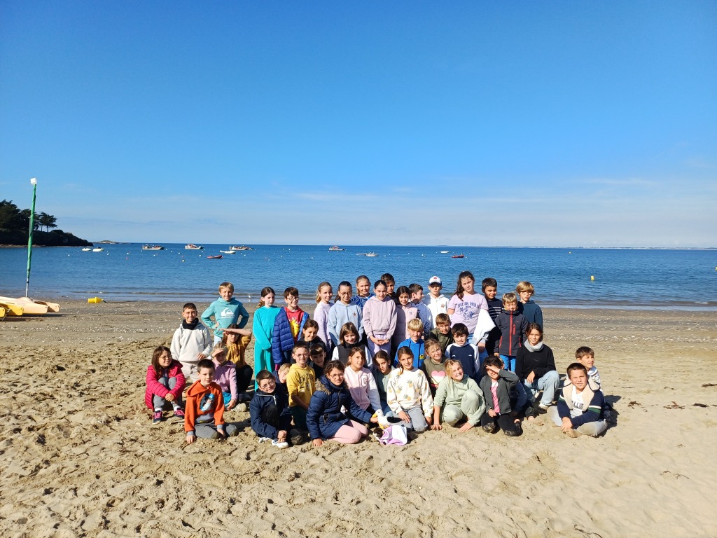 Lundi 29 septembre, les élèves de cm1 ont accompagné les cm2 pour une journée sur la plage de la Poudrantais à Penestin.