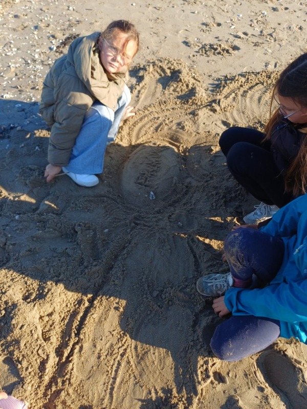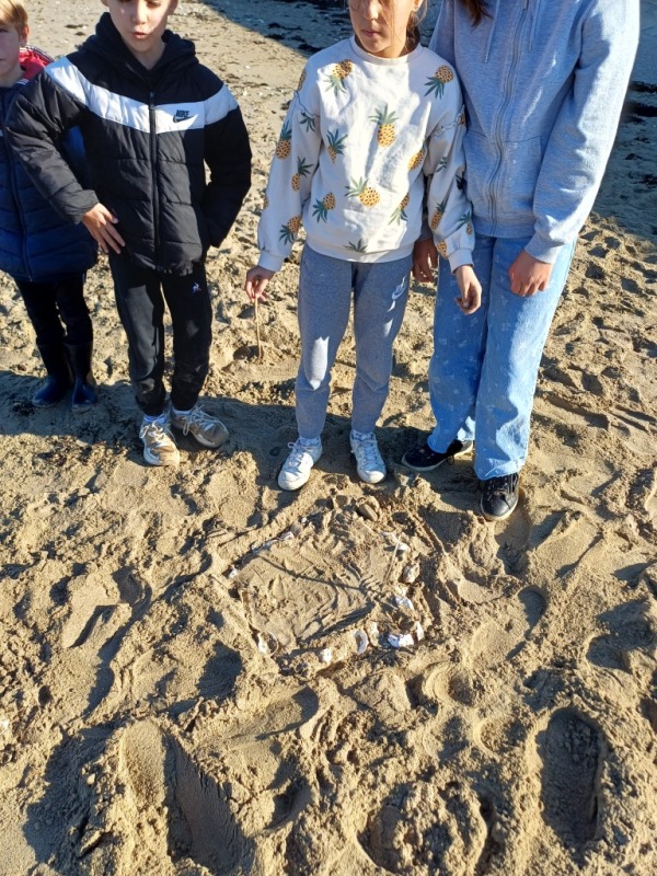 L’après-midi, les cm2 sont allés sur l’eau avec leur funboat. Pendant ce temps, les cm1 ont fait de la géométrie, travail sur les polygones puis de l’histoire avec la réalisation d’une frise historique géante sur le sable.