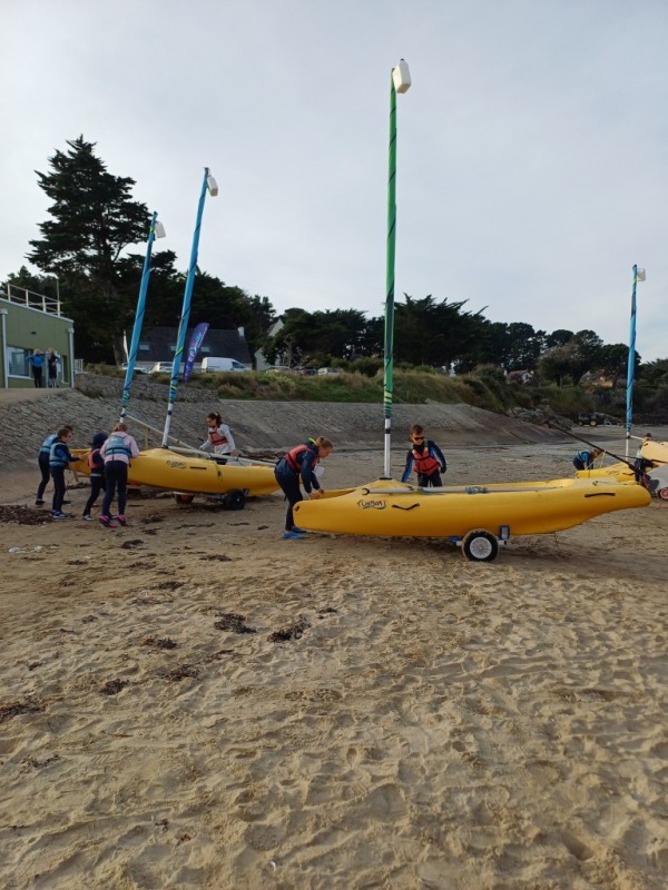 Il a fallu bien évidemment dégréer les bateaux pour les remonter en haut de la plage avant de se changer pour reprendre le car.