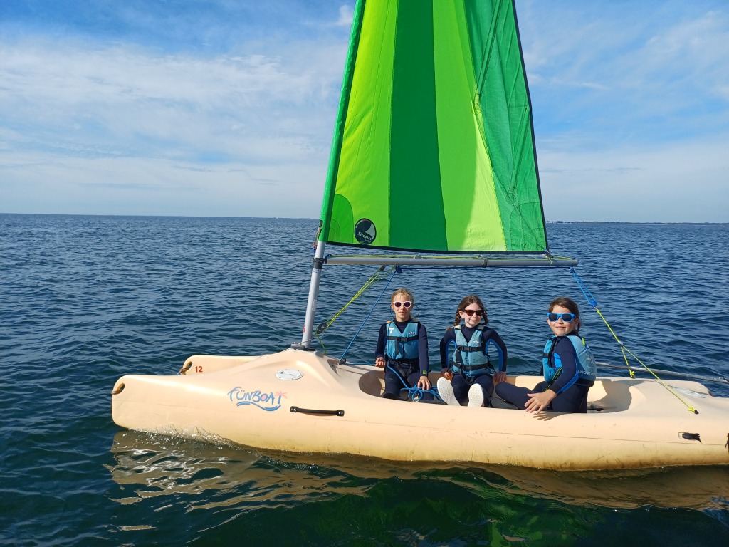 Pour la troisième fois, les élèves de cm2 se sont rendus au club nautique de Pénestin. Cette fois-ci, ils ont passé la journée entière sur l’eau.