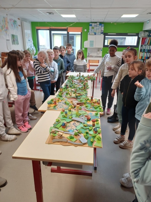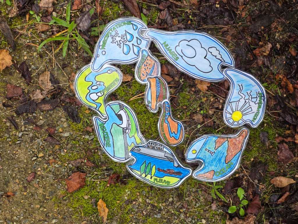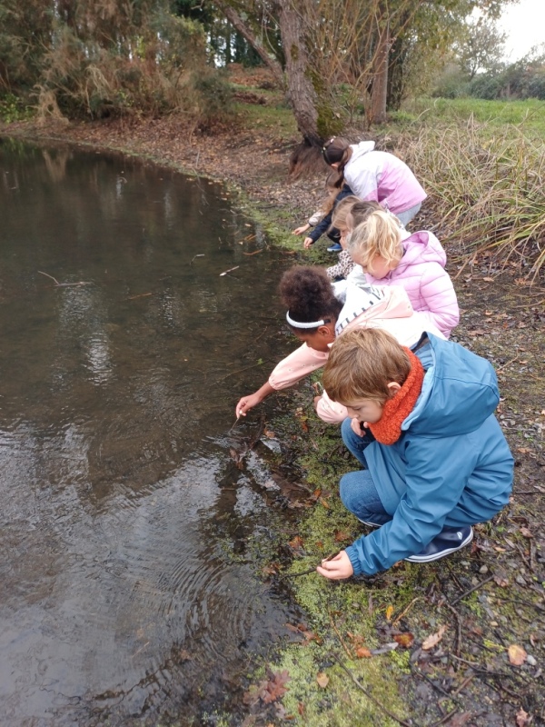 Pendant 2 journées,  ils ont été à la découverte de l’eau  autour de l’école.  L’eau dans la nature est très présente ;  les mares, les étangs, les ruisseaux , les marais ou même les fossés, tous ces points d’eau finissent  dans l’océan.