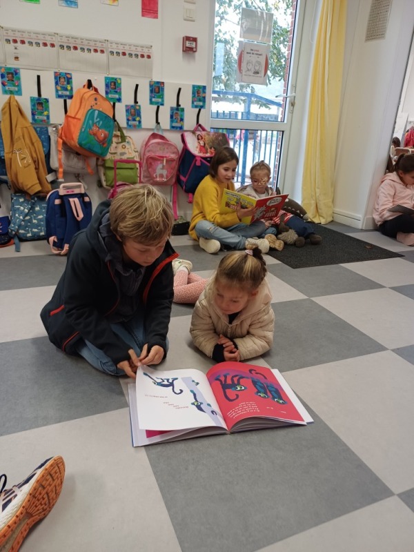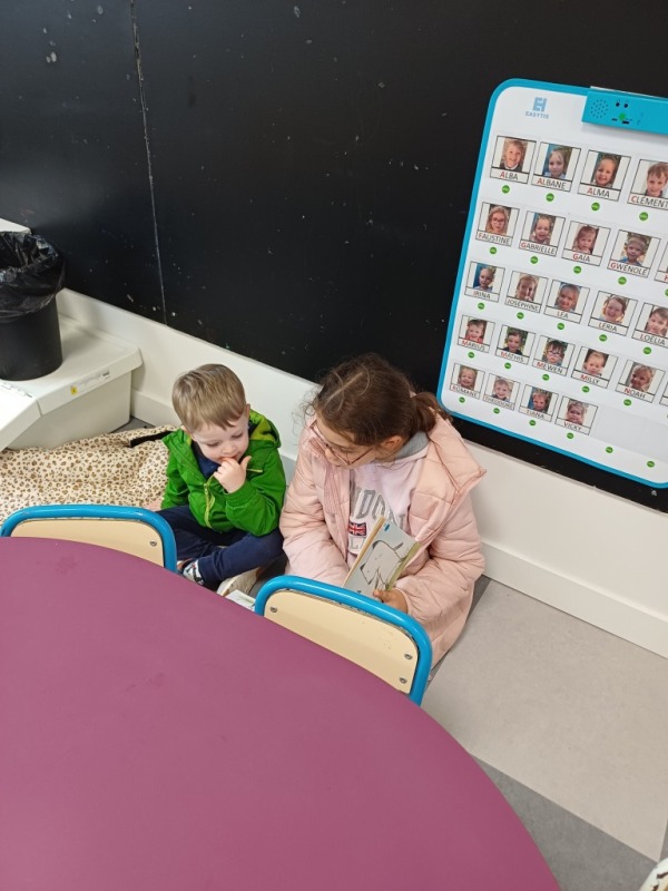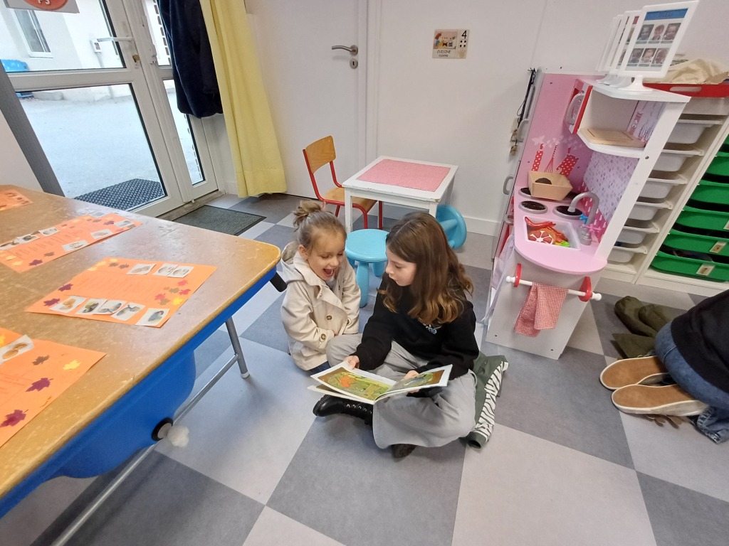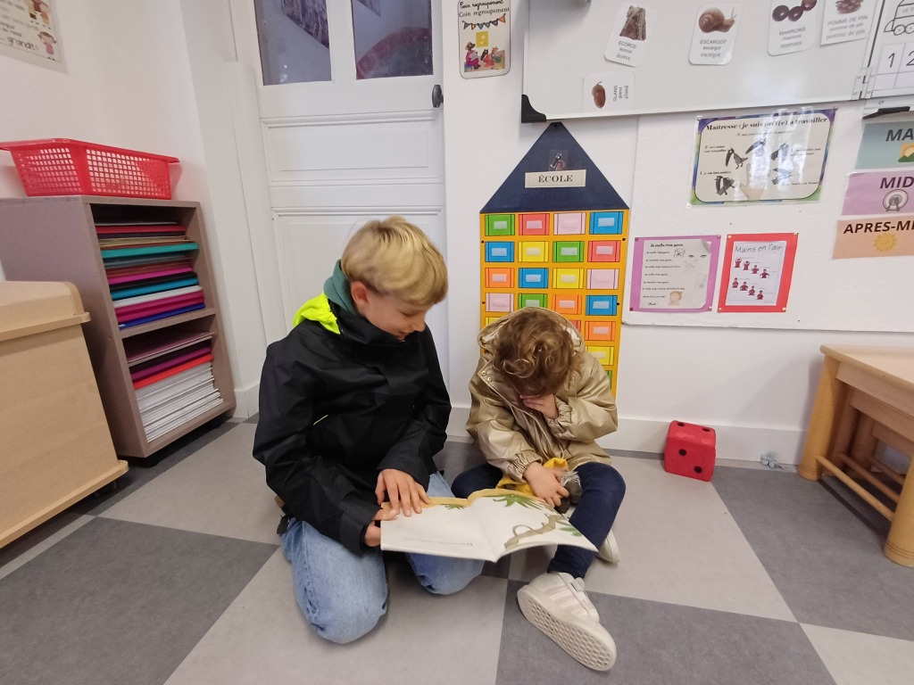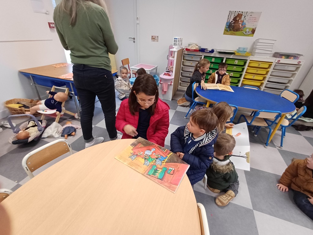 Après la sieste des plus jeunes, tout le monde s’est retrouvé en classe de PS pour un temps partagé.
