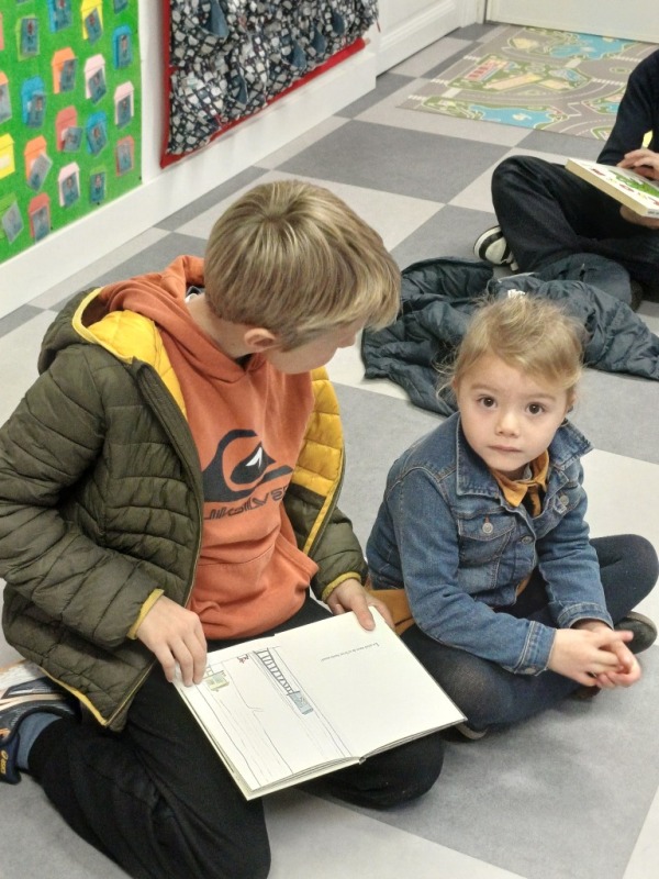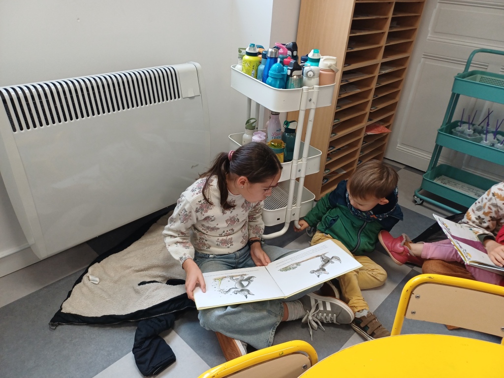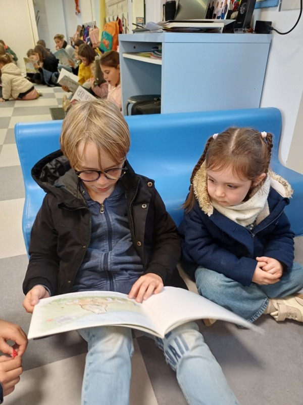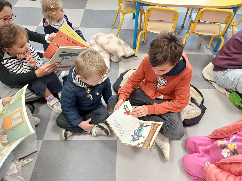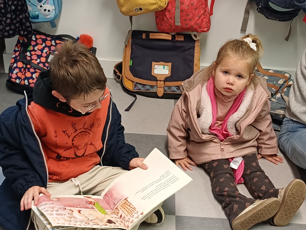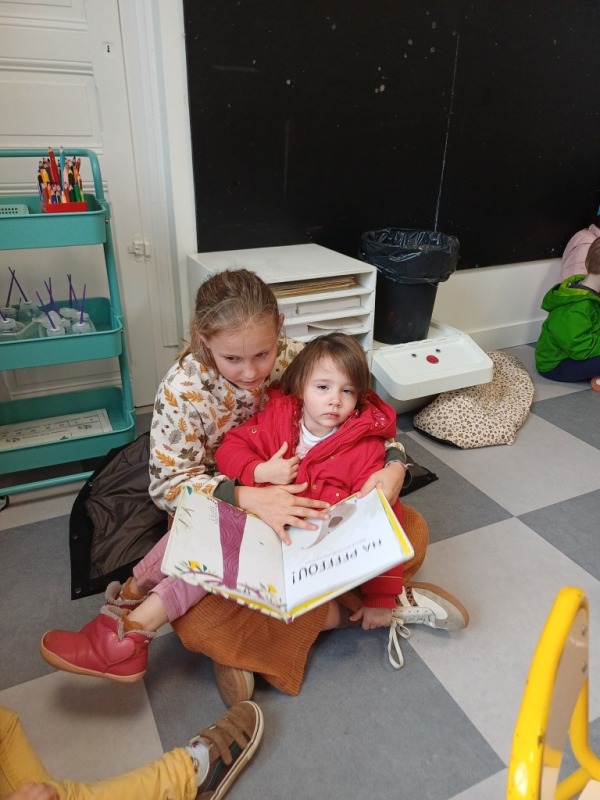 Après la sieste des plus jeunes, tout le monde s’est retrouvé en classe de PS pour un temps partagé.