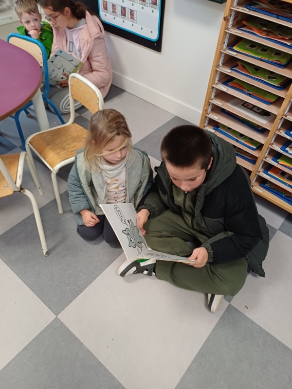 Pendant les vacances, les élèves de Cm1/Cm2 avait un travail particulier à faire: préparer une lecture d’album pour leur filleul.