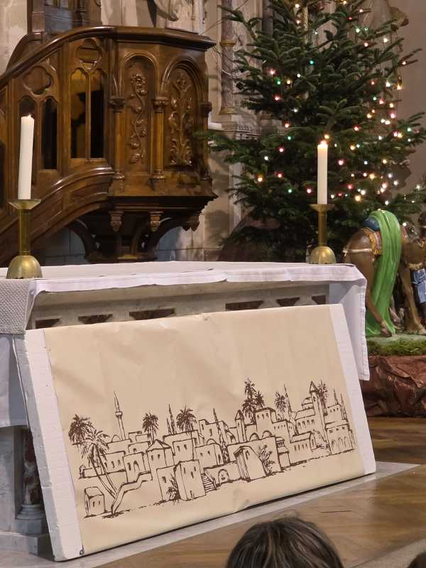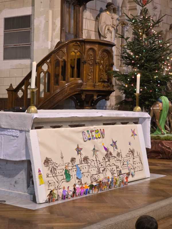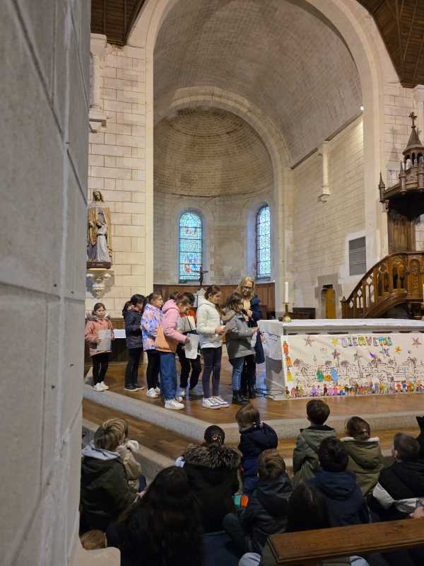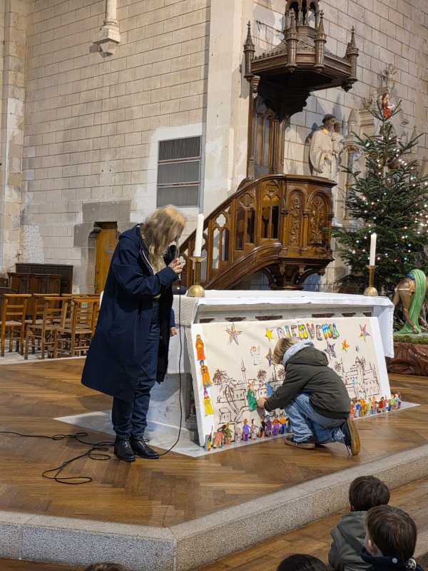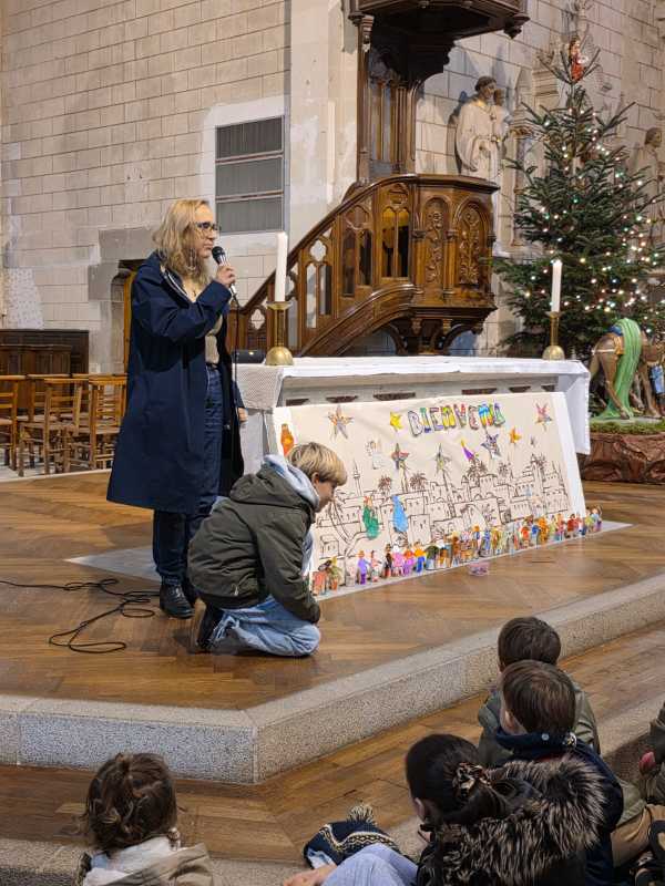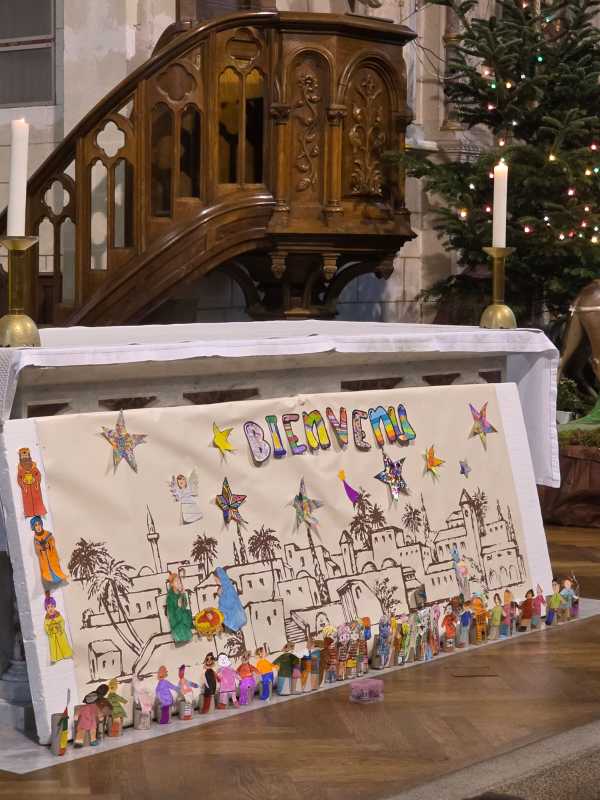 Comme tous les ans, toute l’école se retrouve à l’église de La Madeleine pour un temps de célébration avant Noël. Cette année, « Sois le bienvenu » a ponctué cet temps de partage. Des chants, des lectures, des prières et un magnifique panneau qui s’est complété au fur et à mesure de la célébration.