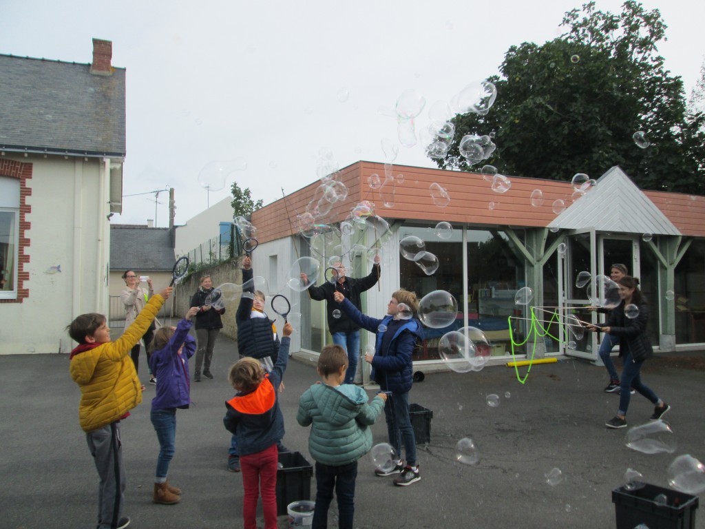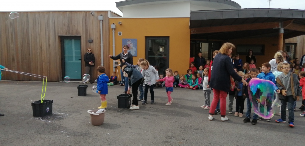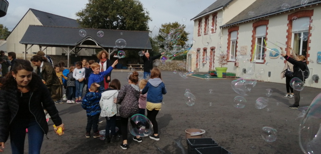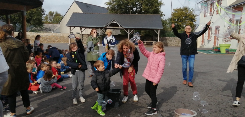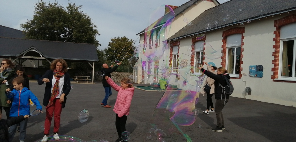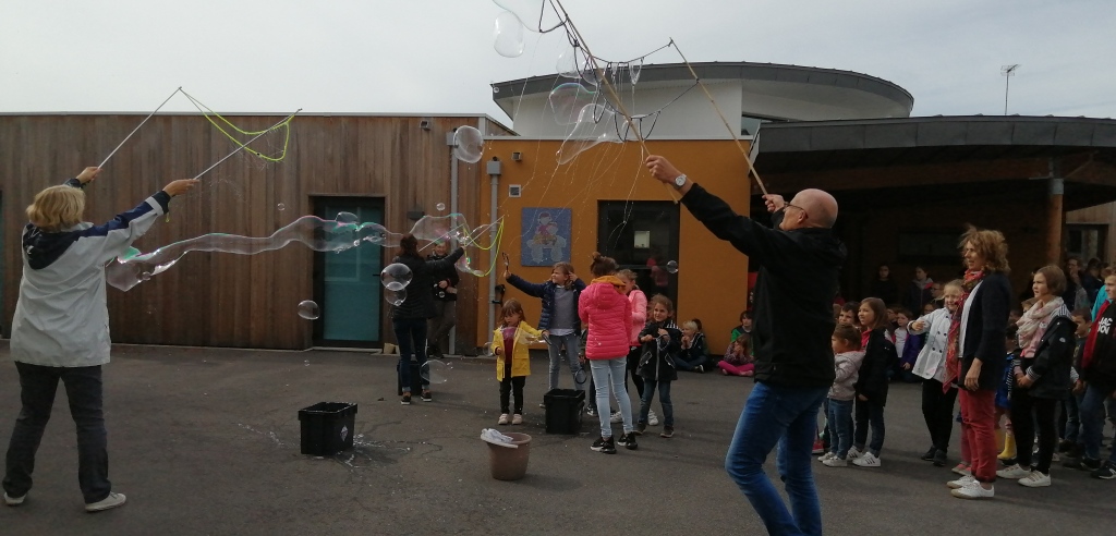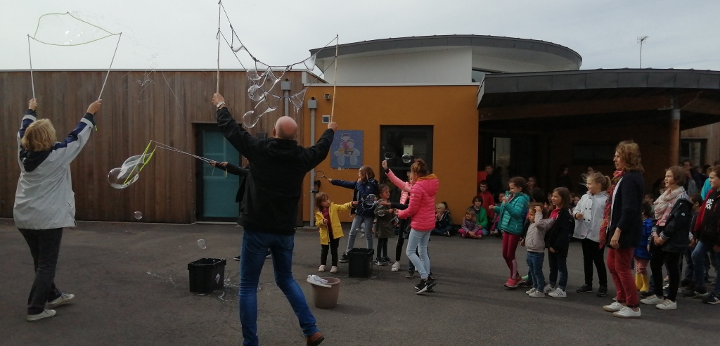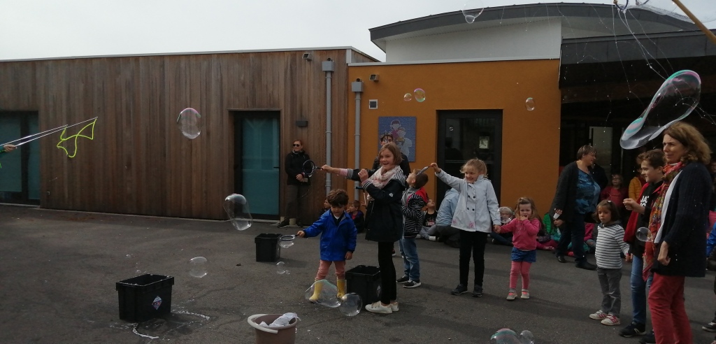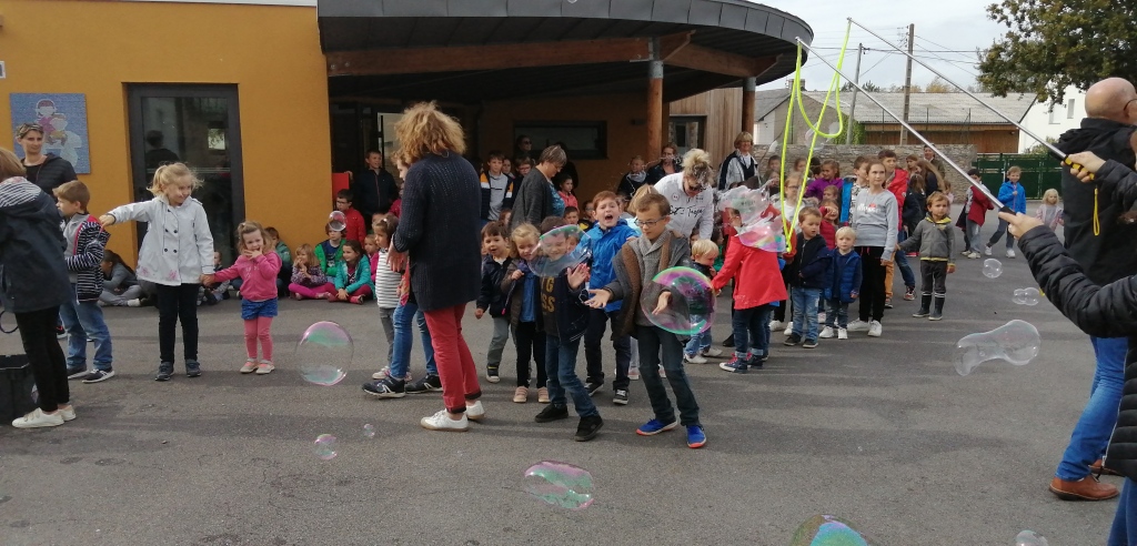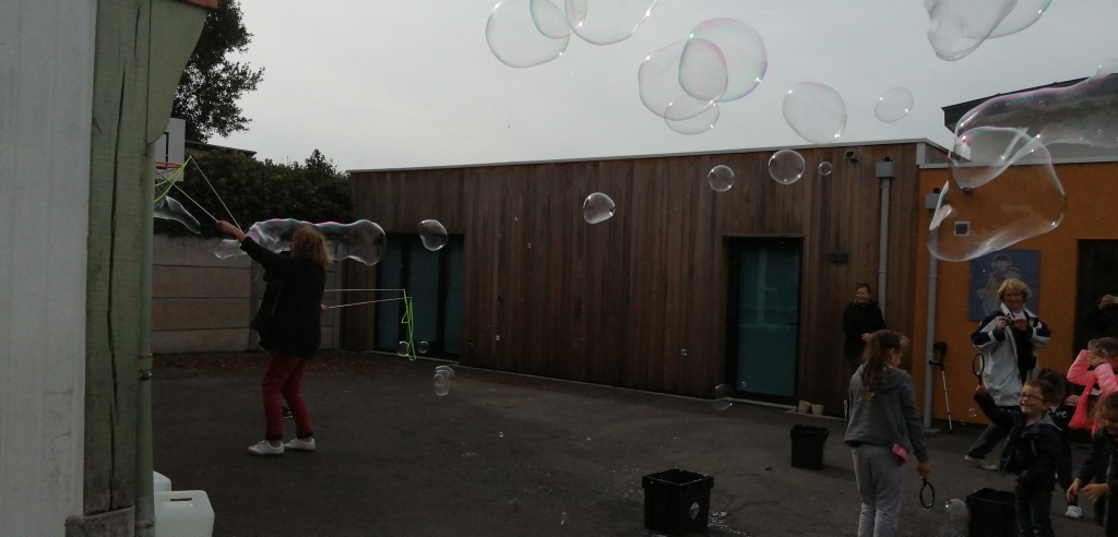 Après une marche solidaire, les enfants ont fait des bulles géantes. Les bulles, symbole de l’air que l’on respire et de la chance que nous avons d’être en bonne santé et de respirer normalement.