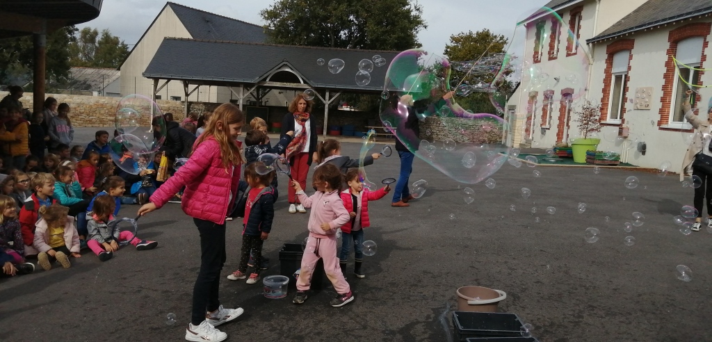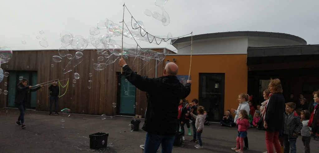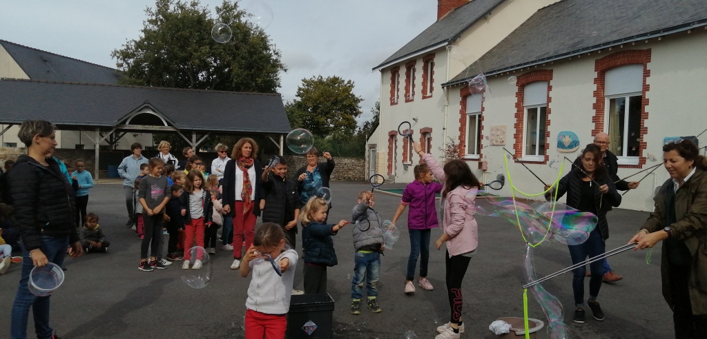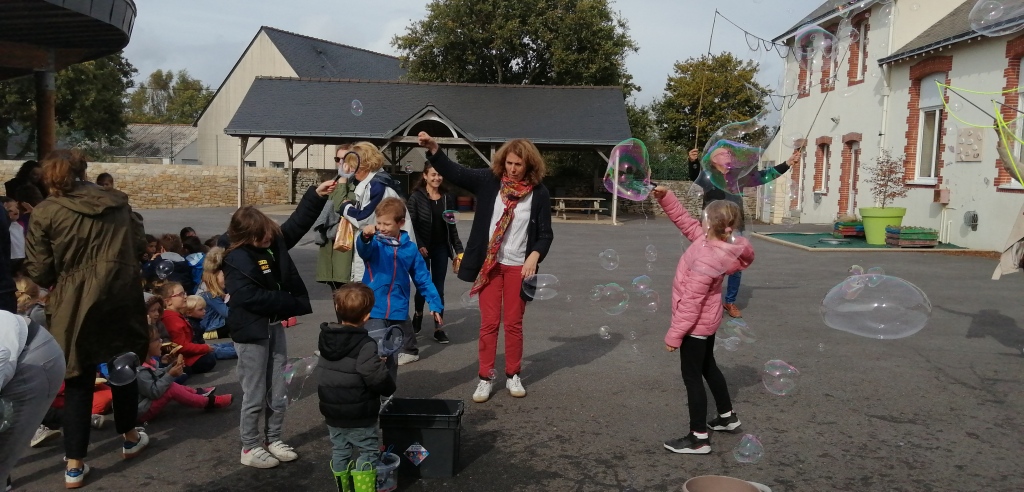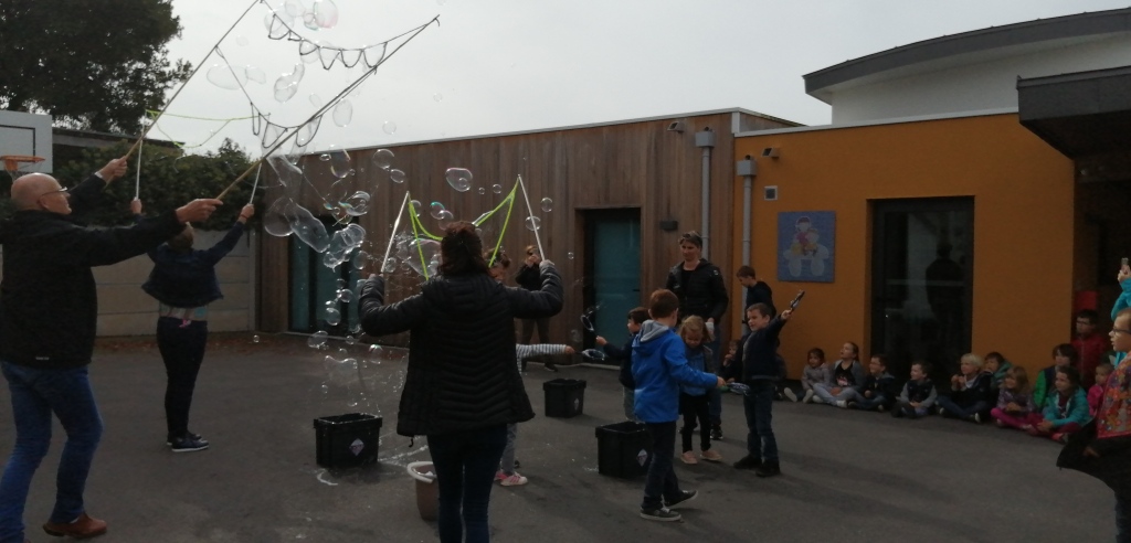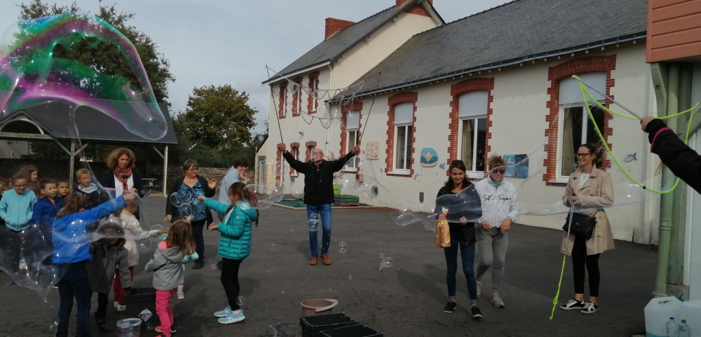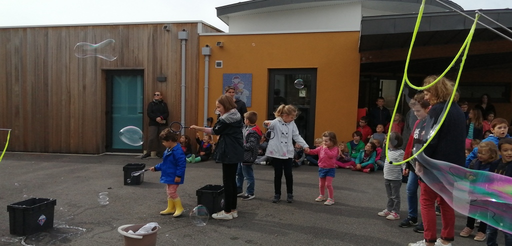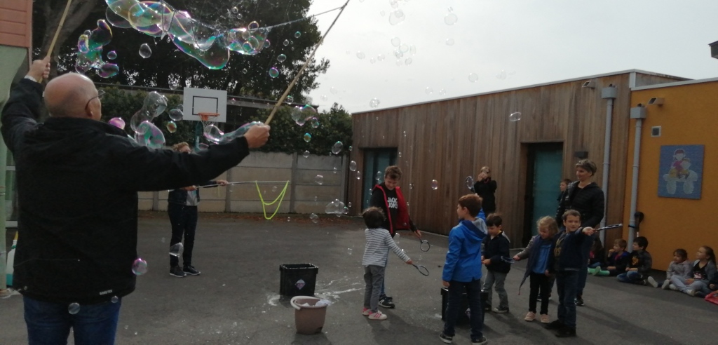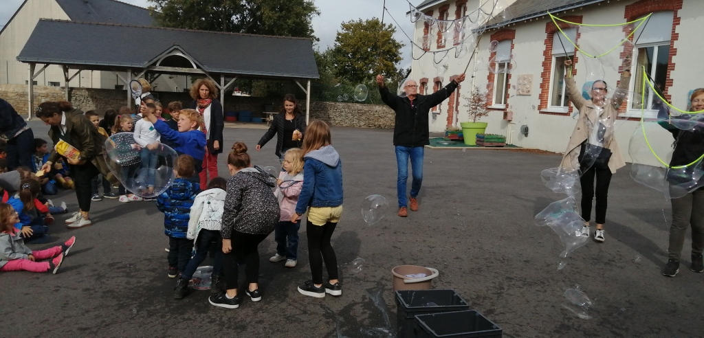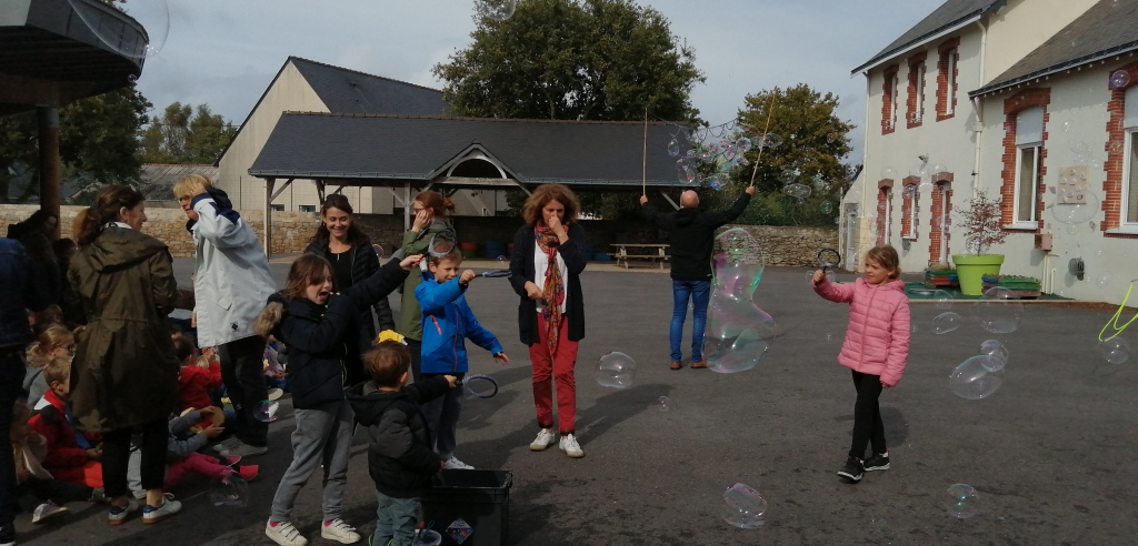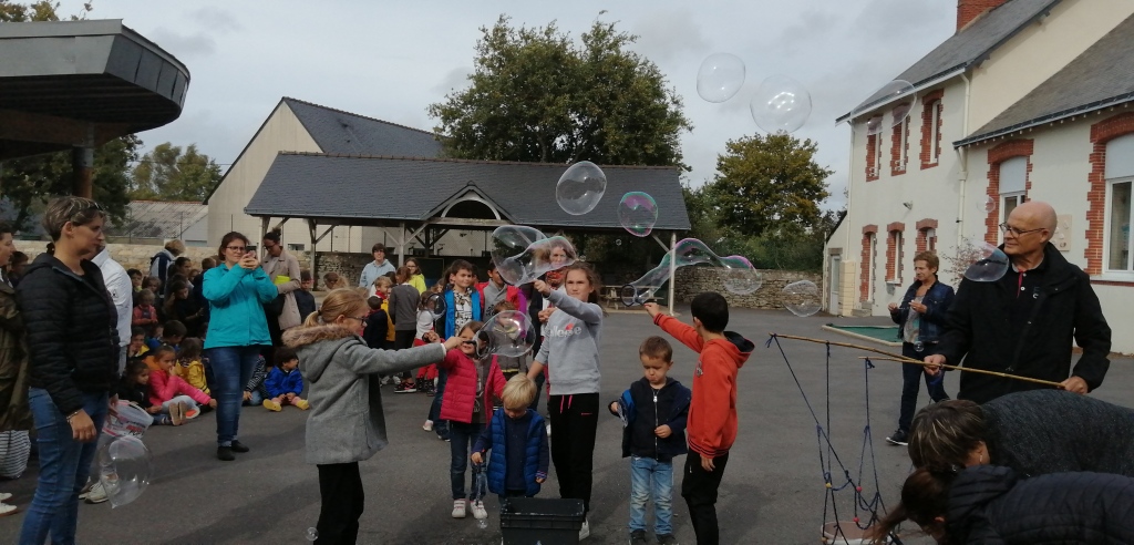 Après une marche solidaire, les enfants ont fait des bulles géantes. Les bulles, symbole de l’air que l’on respire et de la chance que nous avons d’être en bonne santé et de respirer normalement.