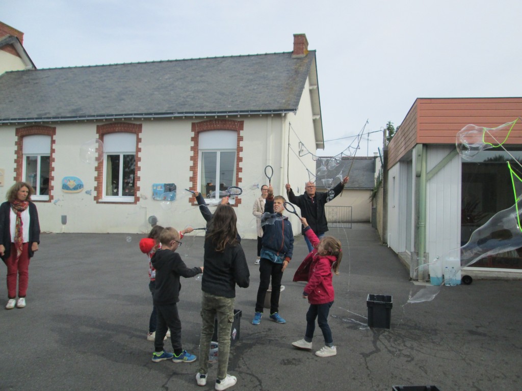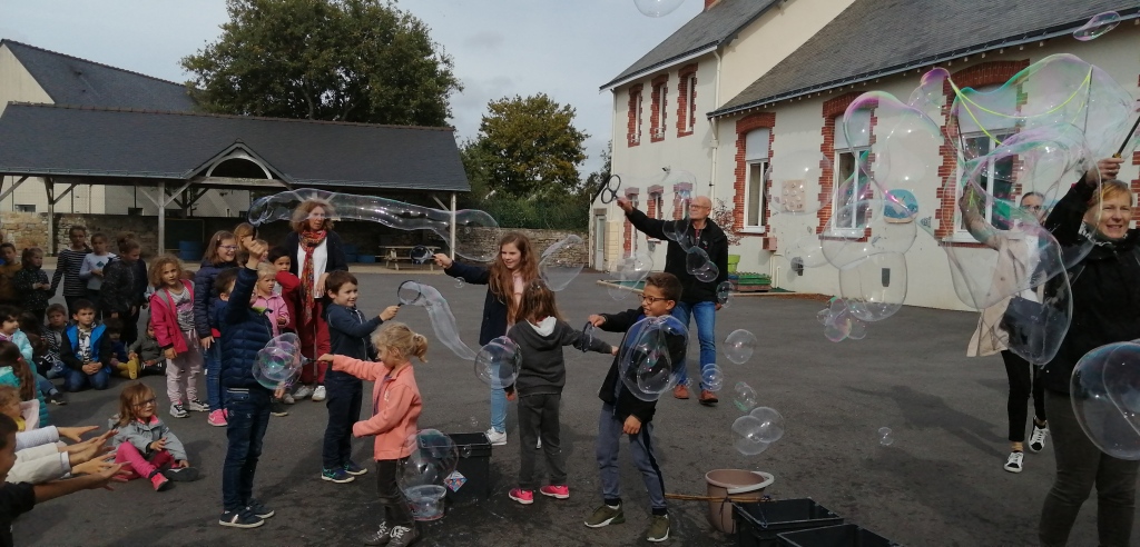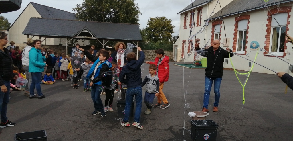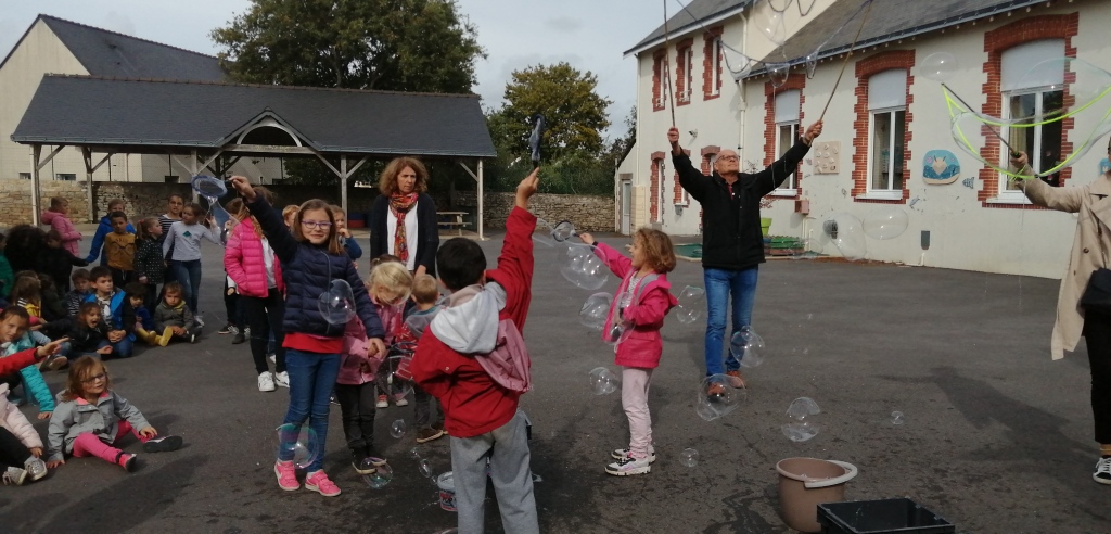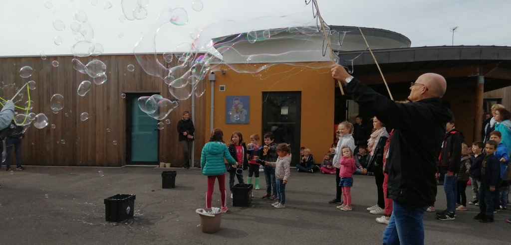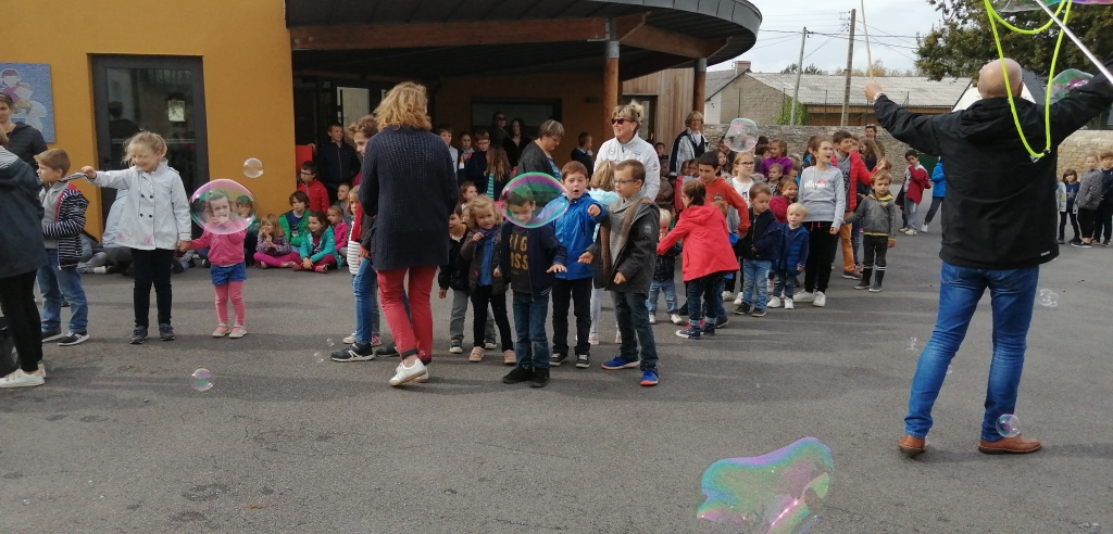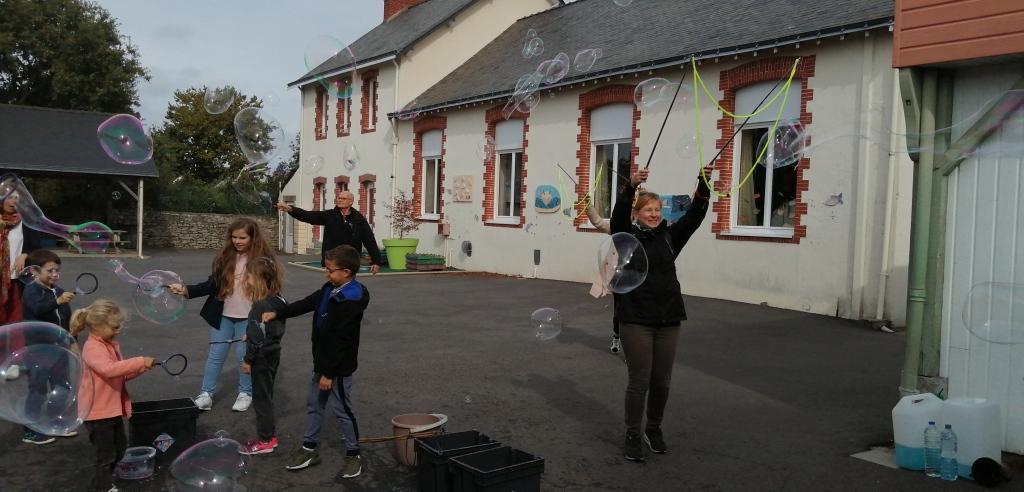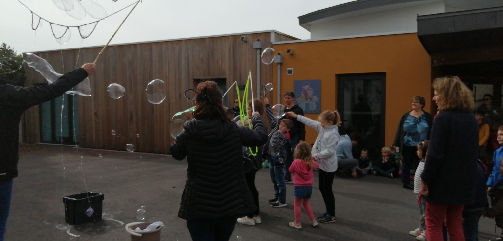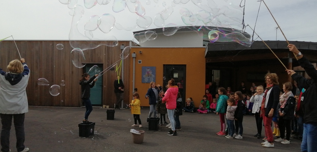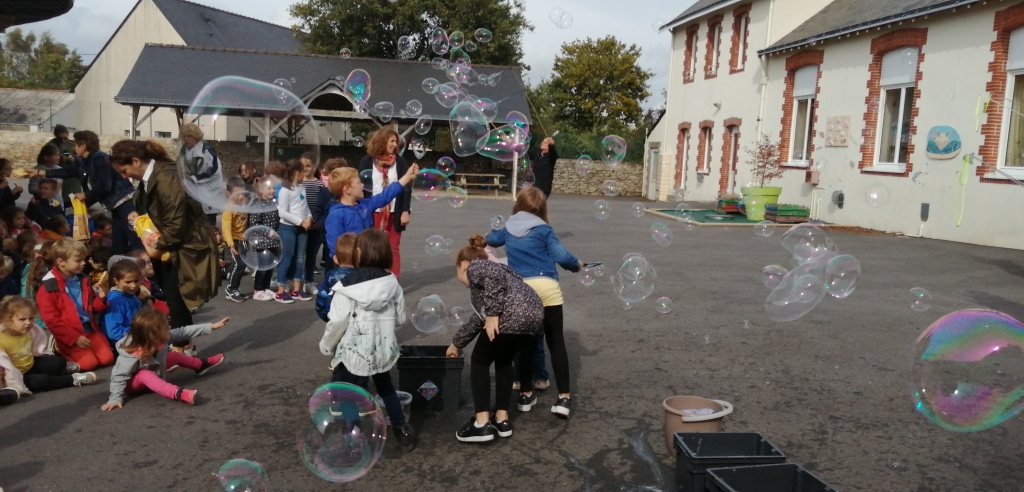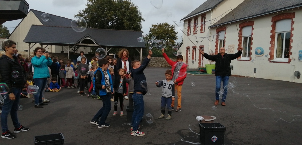 Après une marche solidaire, les enfants ont fait des bulles géantes. Les bulles, symbole de l’air que l’on respire et de la chance que nous avons d’être en bonne santé et de respirer normalement.