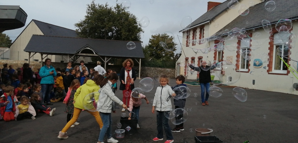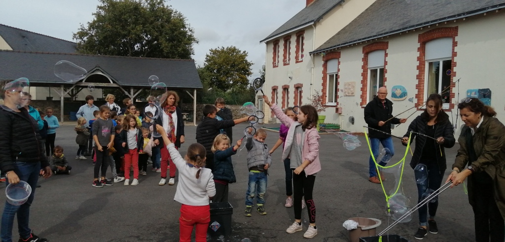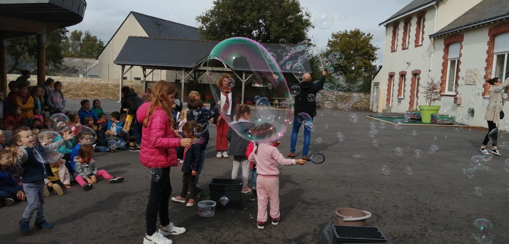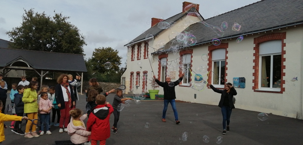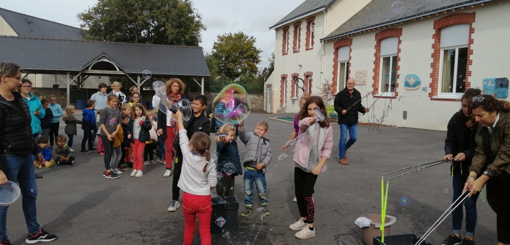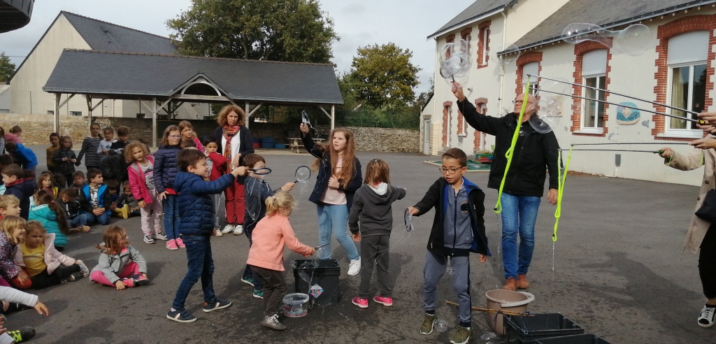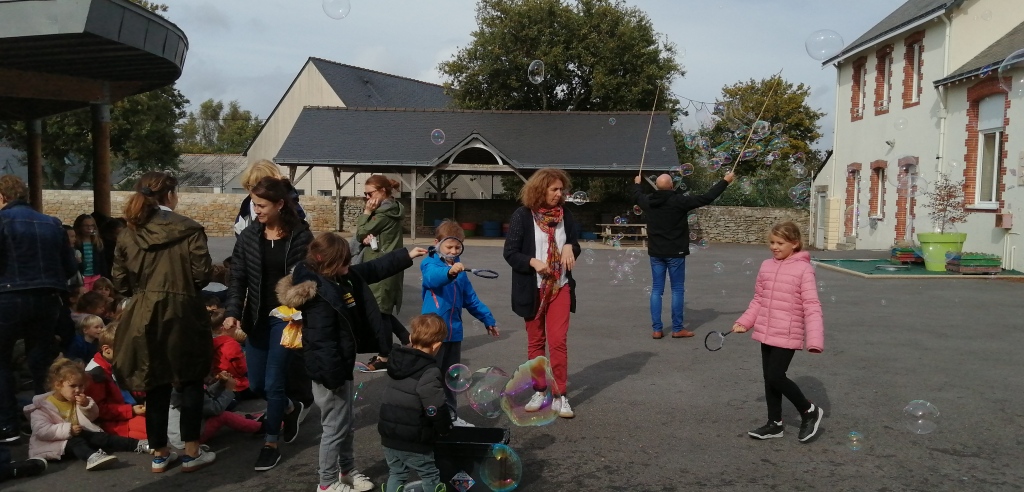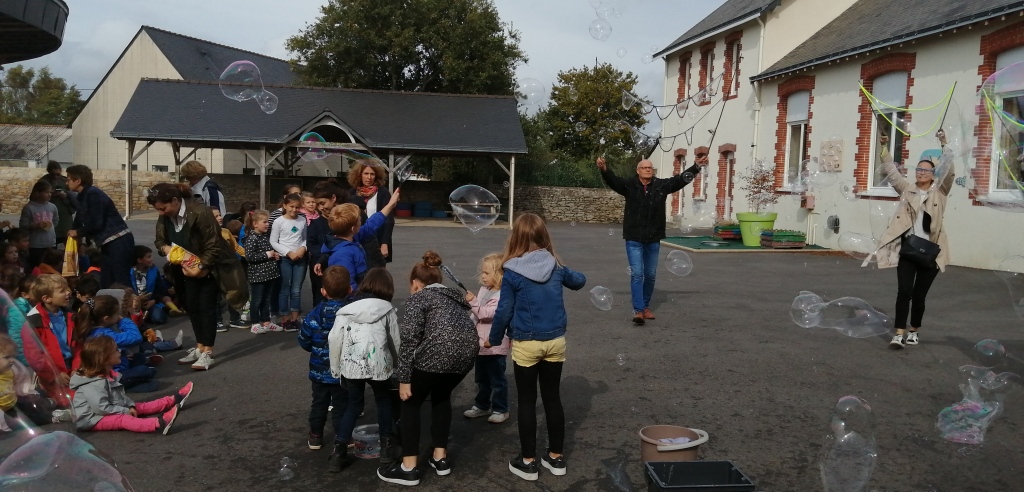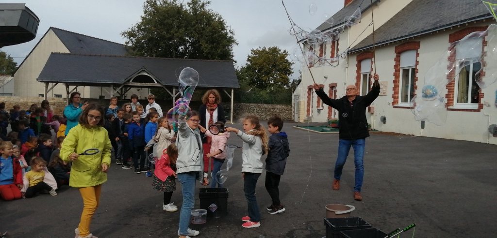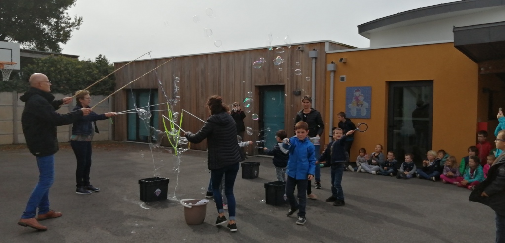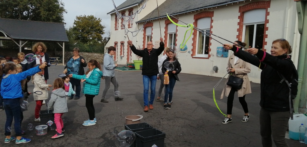 Après une marche solidaire, les enfants ont fait des bulles géantes. Les bulles, symbole de l’air que l’on respire et de la chance que nous avons d’être en bonne santé et de respirer normalement.
