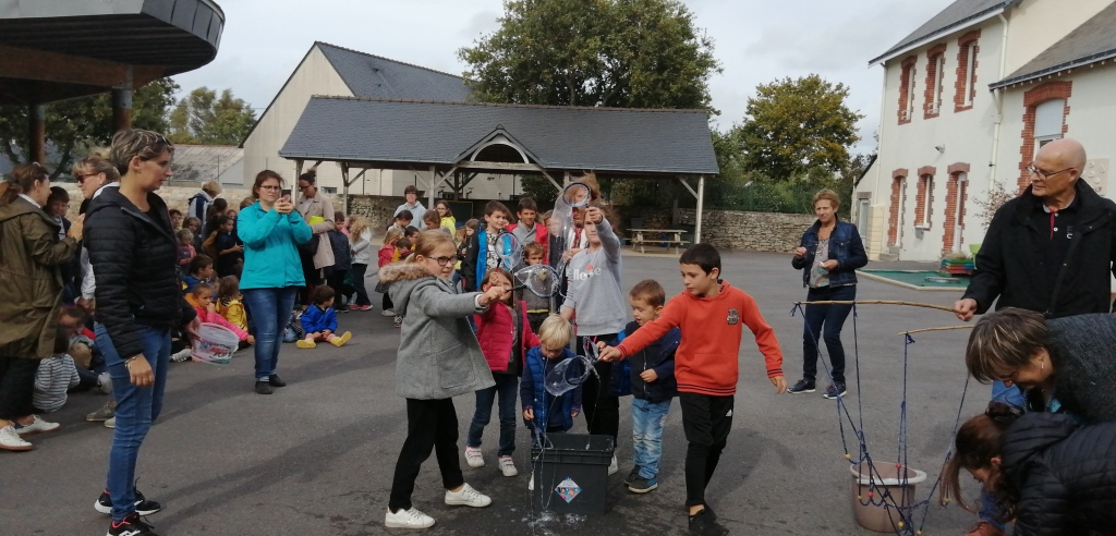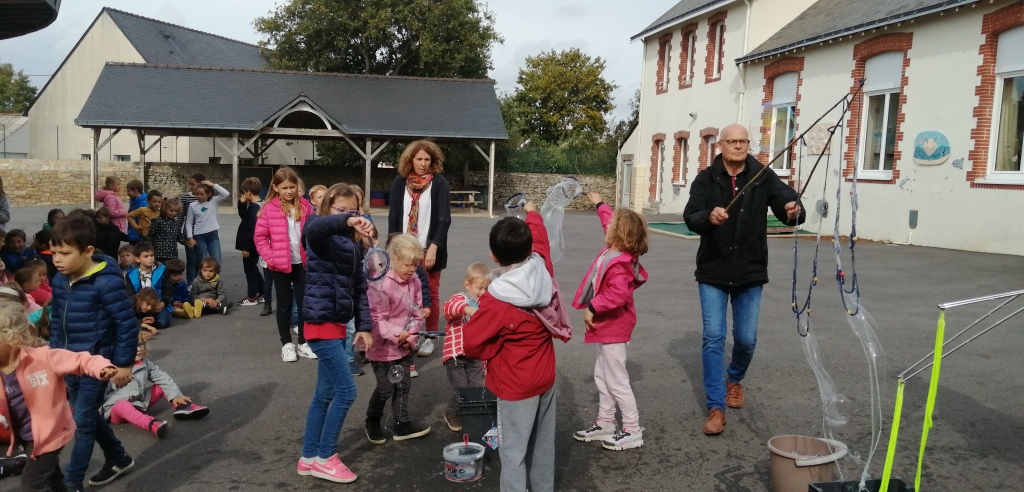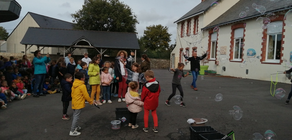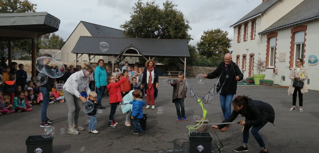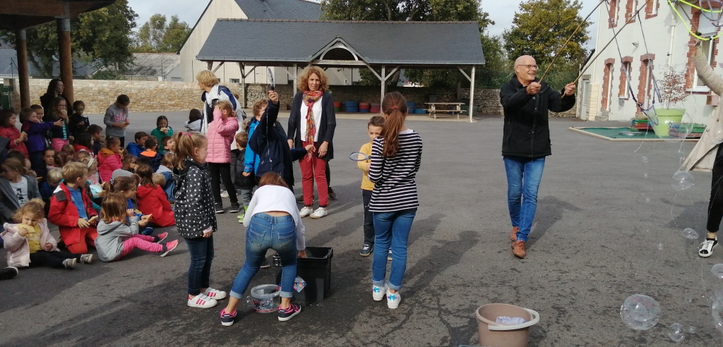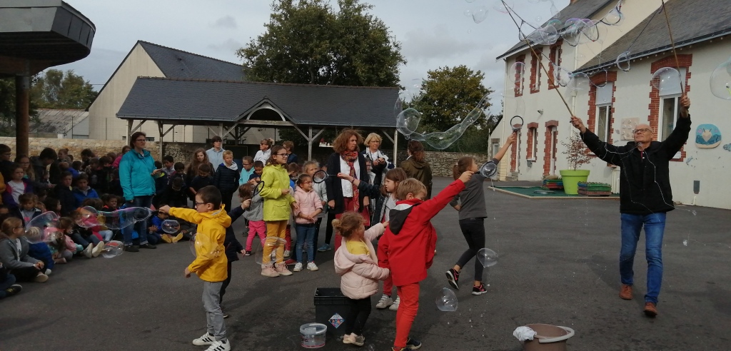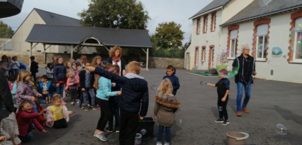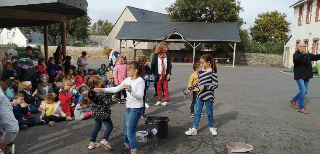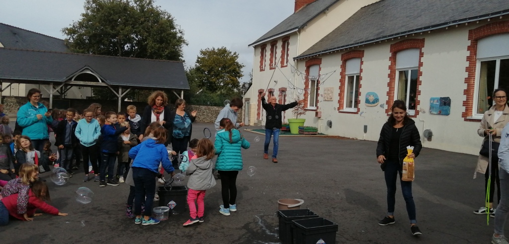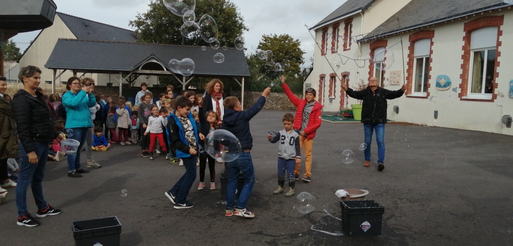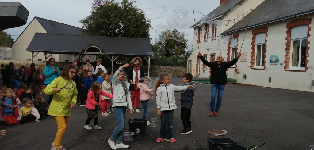 Après une marche solidaire, les enfants ont fait des bulles géantes. Les bulles, symbole de l’air que l’on respire et de la chance que nous avons d’être en bonne santé et de respirer normalement.