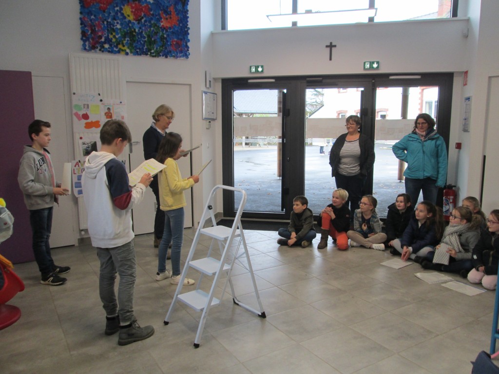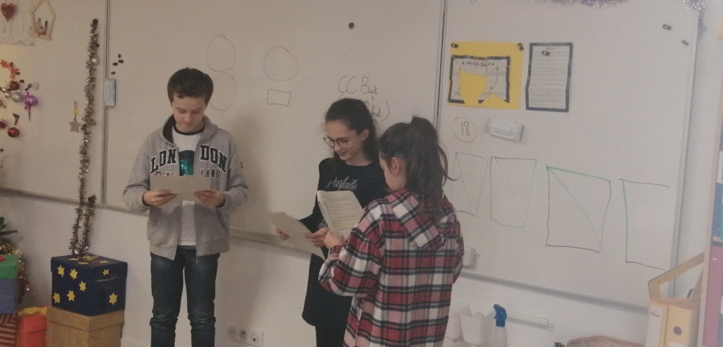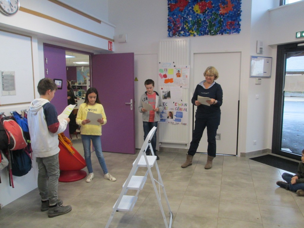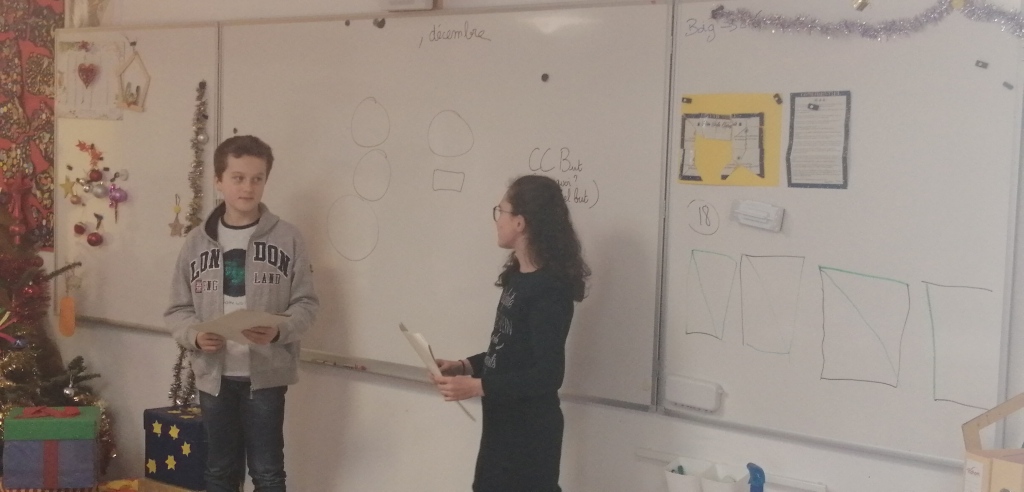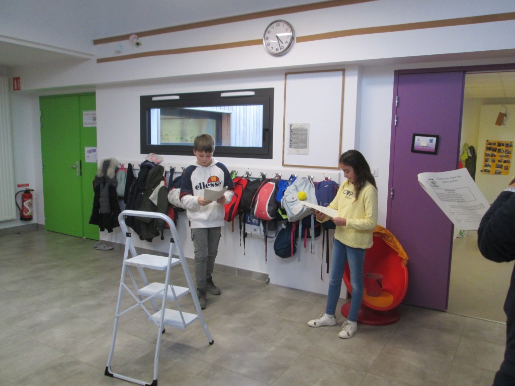 4 élèves de CM2 ont participé aux temps d’APC sur la période de novembre et décembre. Un travail autour de la lecture à travers des jeux de dictions, de pose de sa voix et de théâtre. A la fin de la période, ils ont présenté une petite pièce , d’abord aux autres élèves d’APC puis à toute la classe.