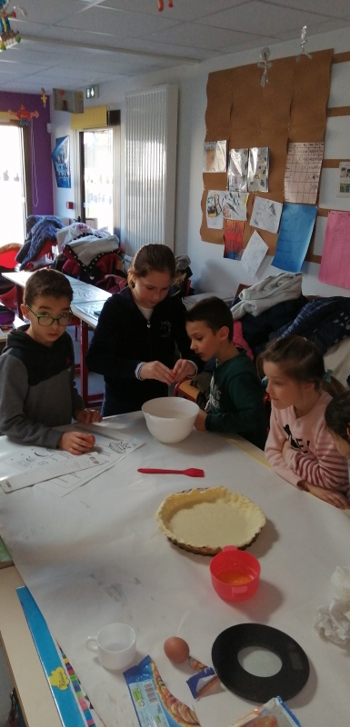 Comme toutes les classes dans l’école, les élèves de GS-CP ont retrouvé leurs parrains et marraines pour des ateliers cuisine.