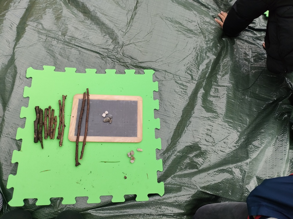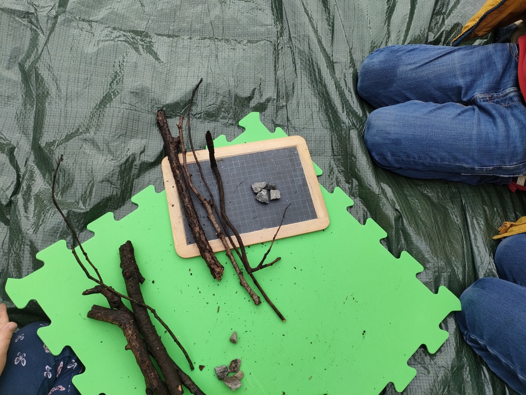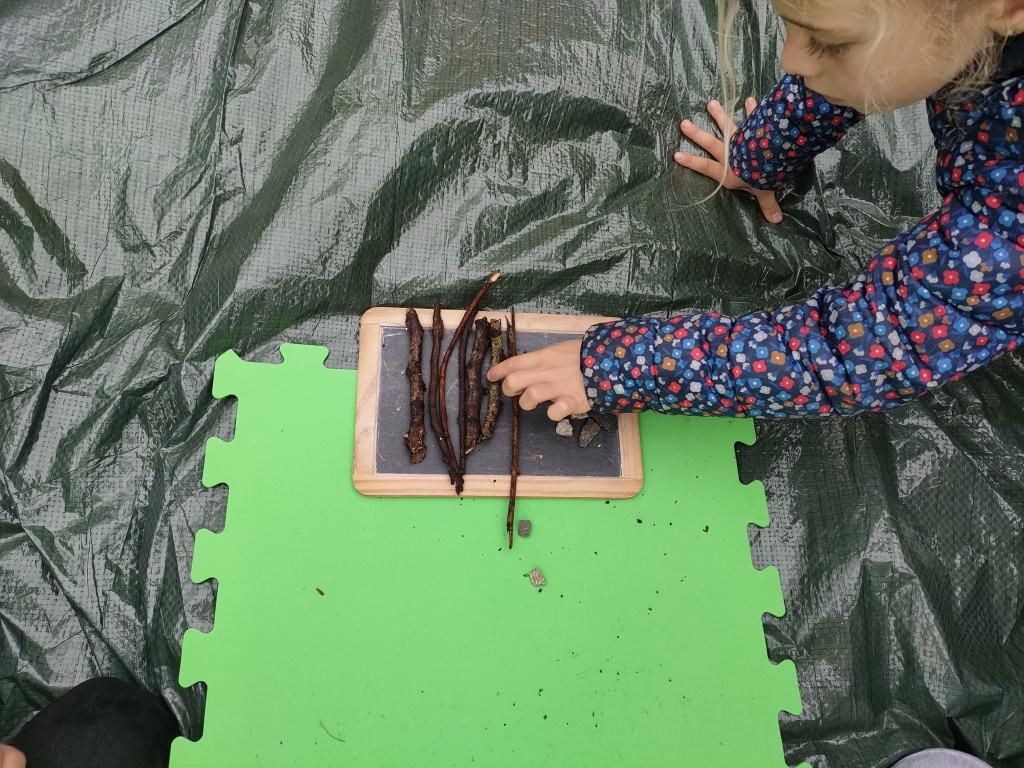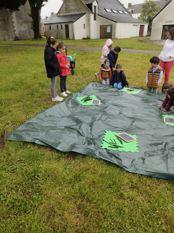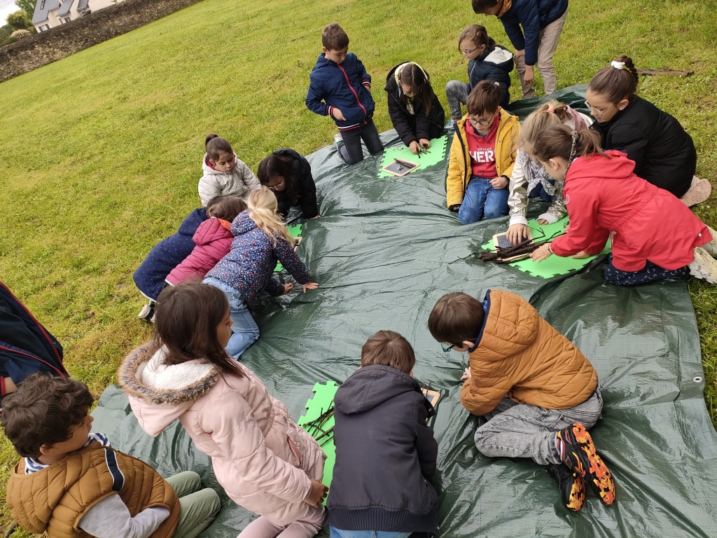 Le principe est de sortir de l’école et d’utiliser les éléments trouvés dans la nature pour travailler une notion.