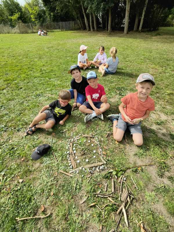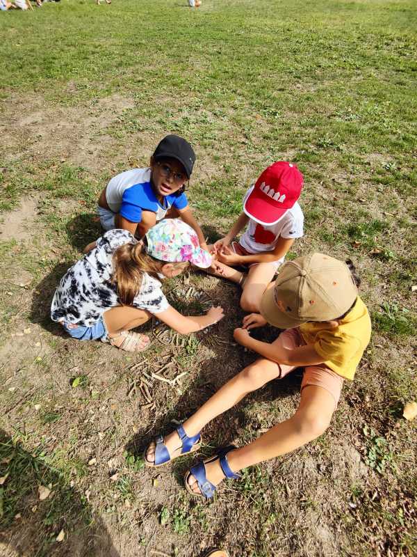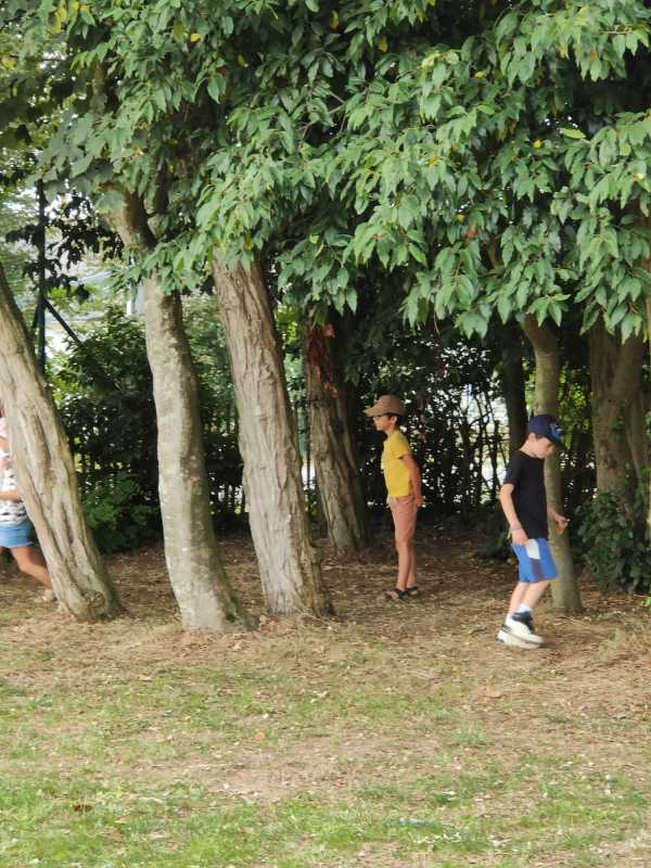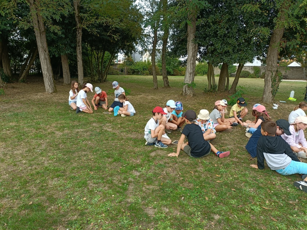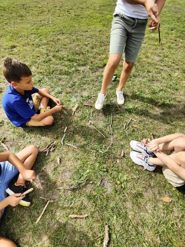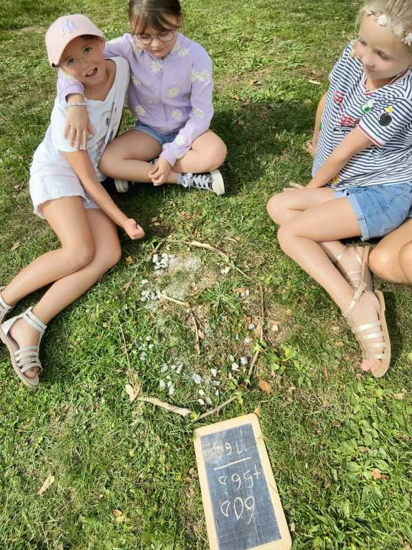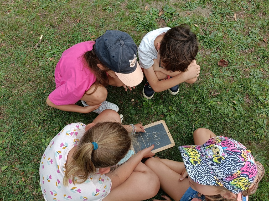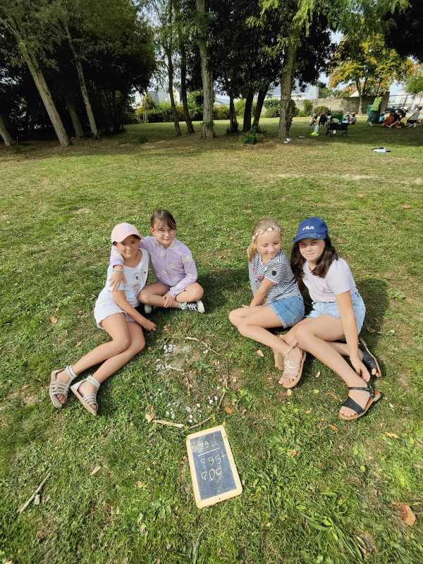 Les ce2, cm1 et cm2 ont eu la chance jeudi matin de faire leur séance de mathématiques dehors.