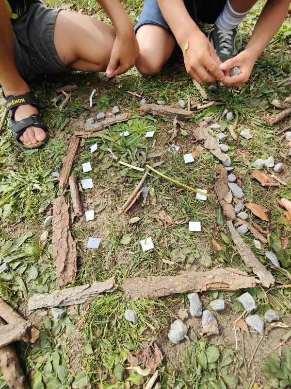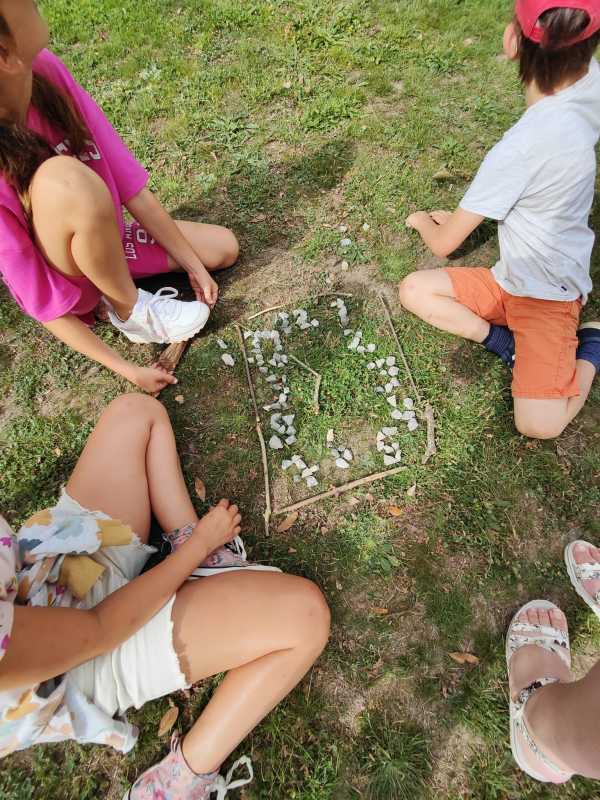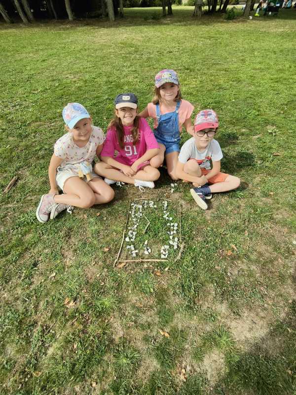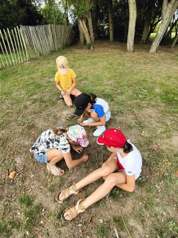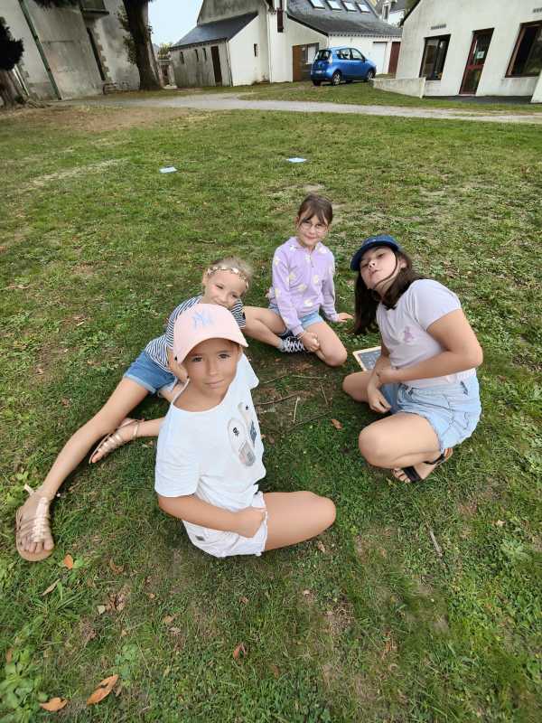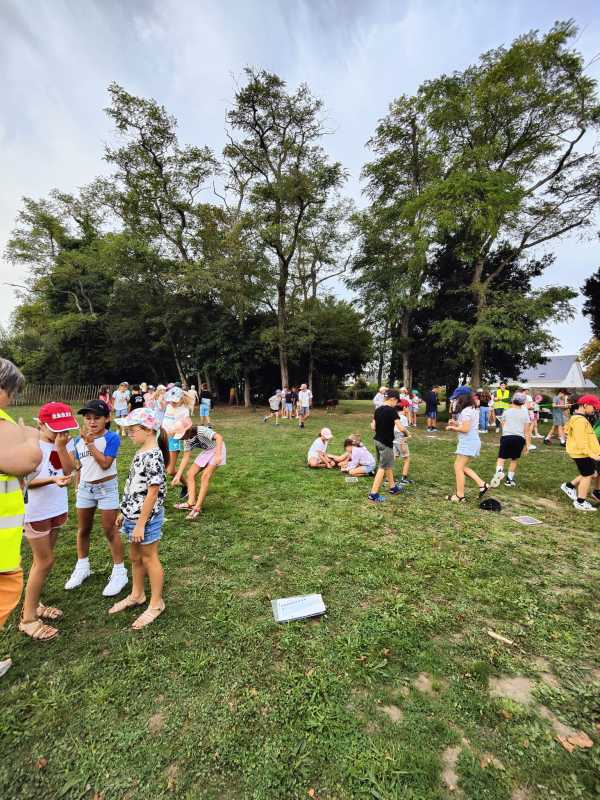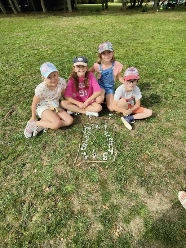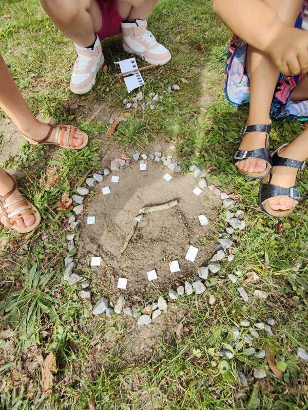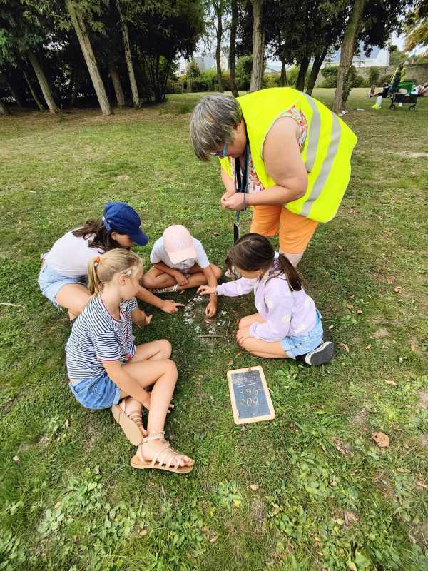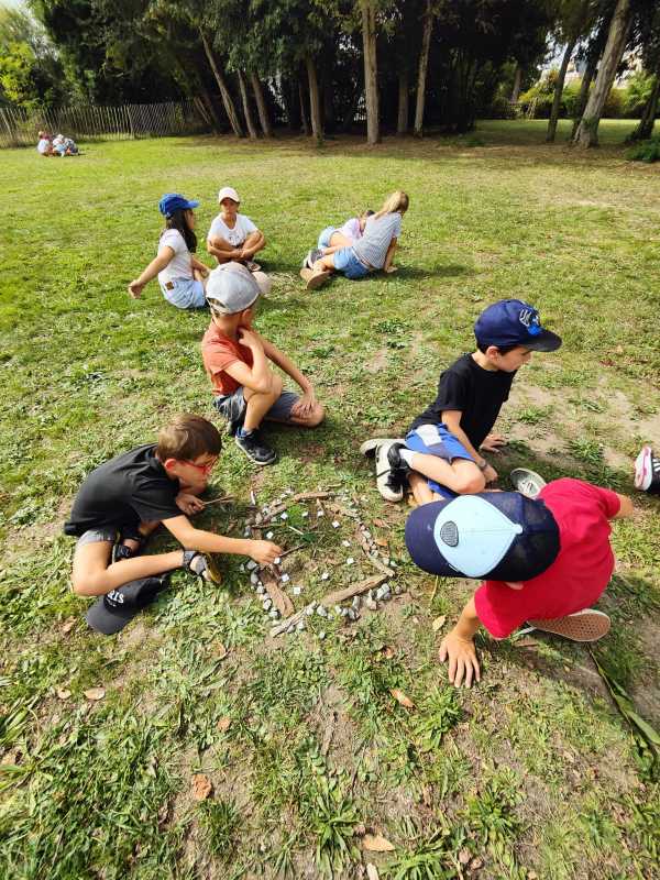 Les ce2, cm1 et cm2 ont eu la chance jeudi matin de faire leur séance de mathématiques dehors.