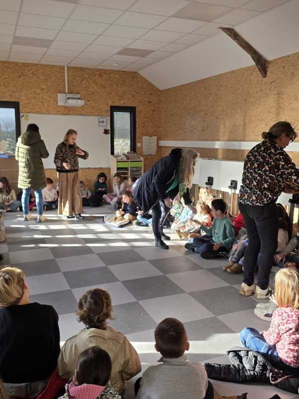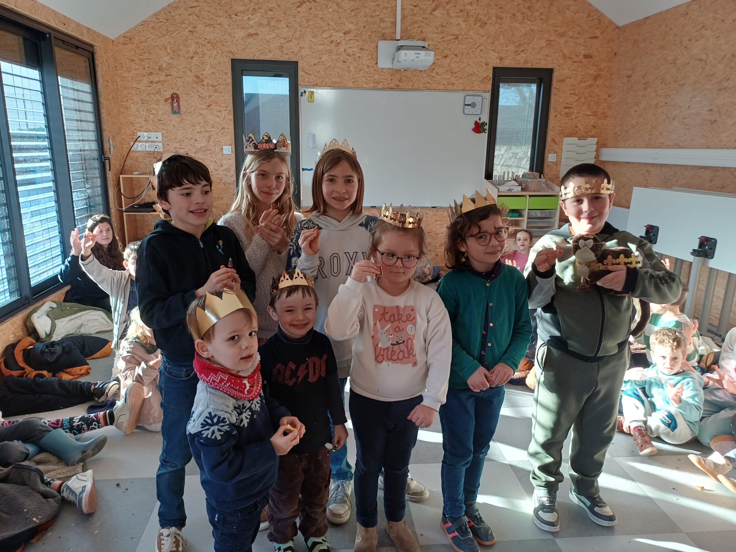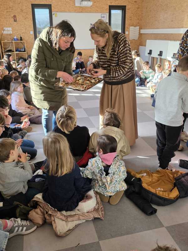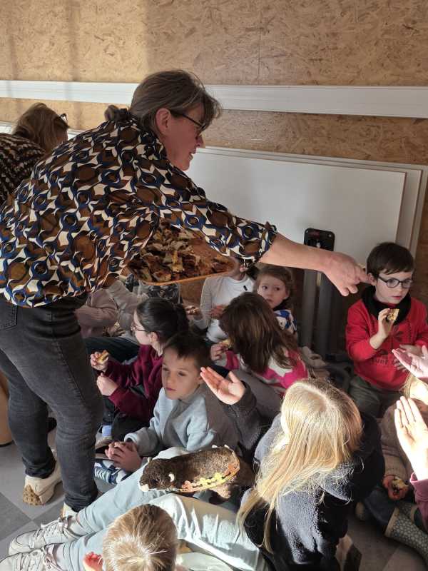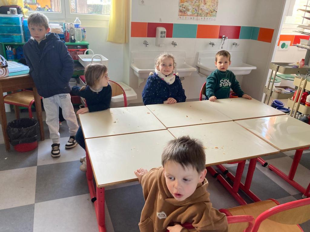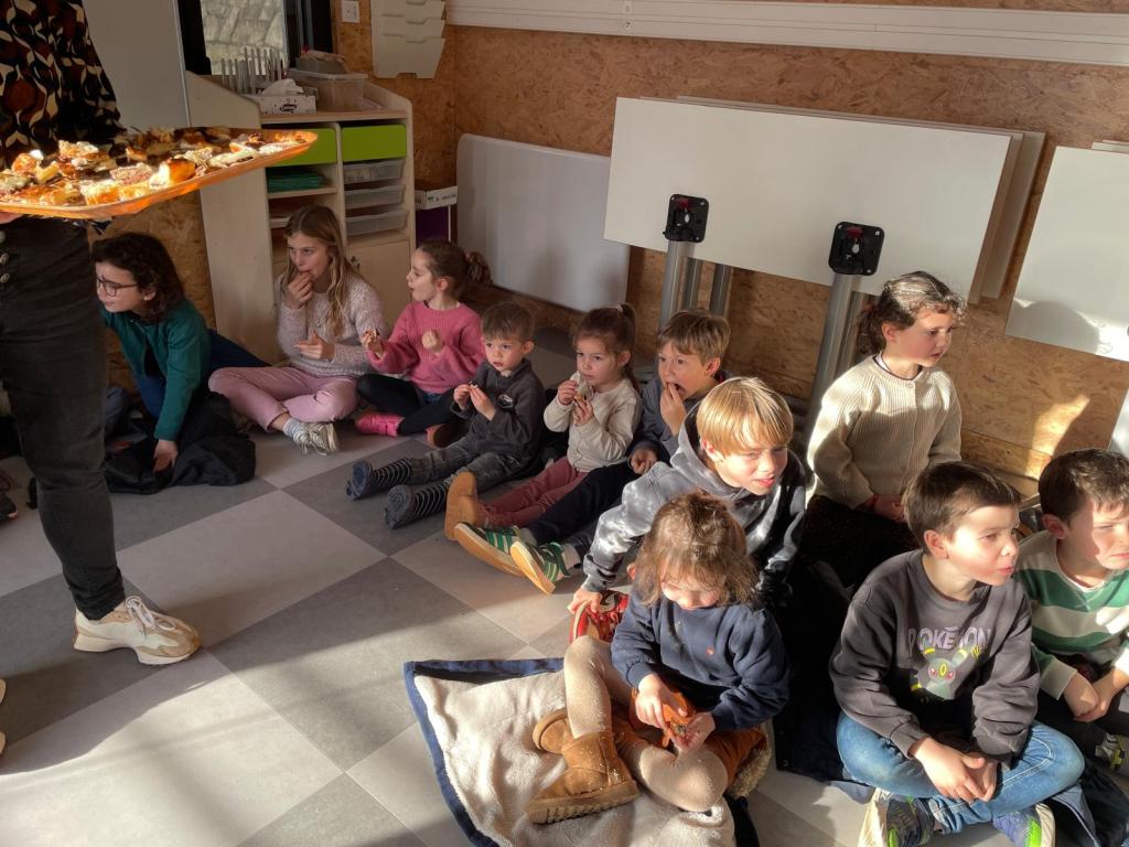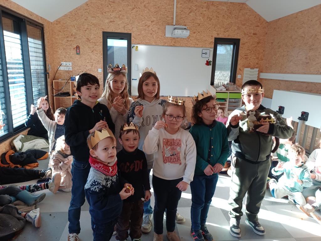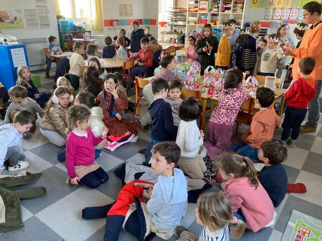 Mardi 27 janvier, pour terminer la journée tous les élèves se sont retrouvés entre parrains/marraines et filleuls pour déguster les galettes frangipane-chocolat que les ps et les ms avaient cuisinées la veille avec les parents et grands-parents. Tout le monde s’est régalé, bravo aux cuisiniers.