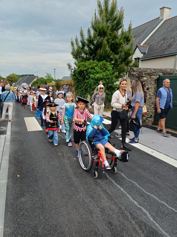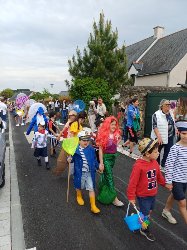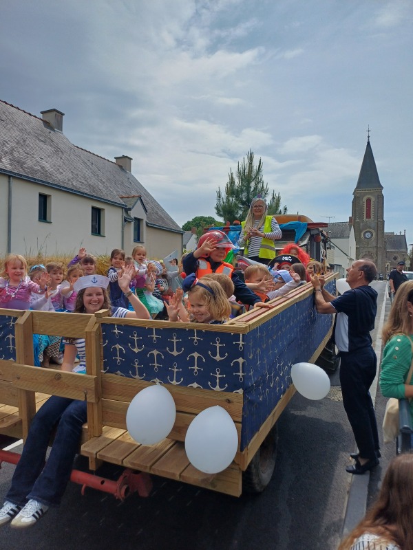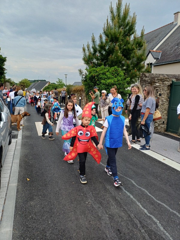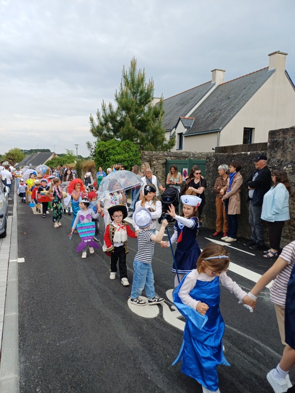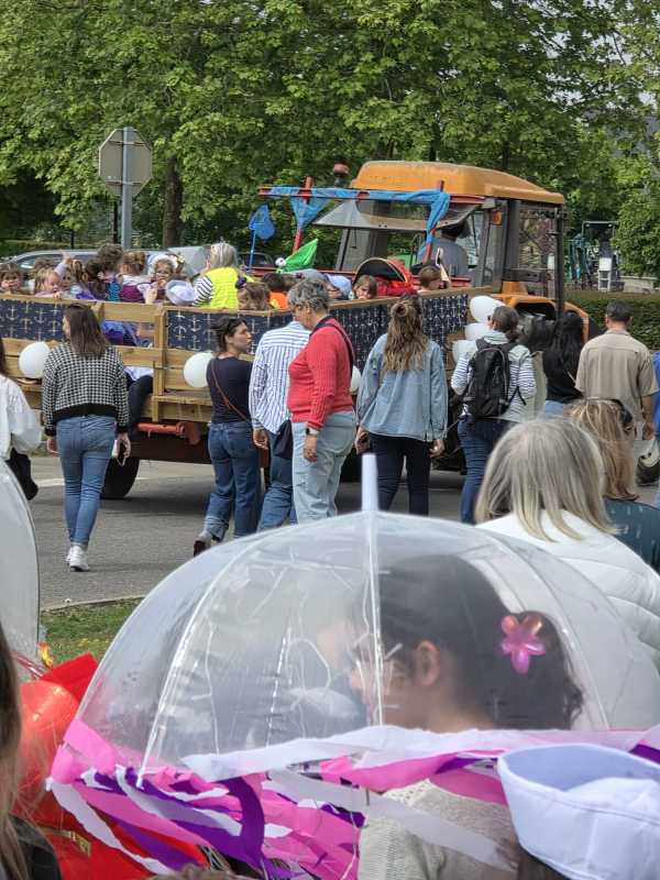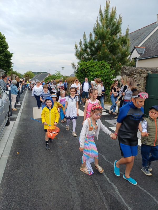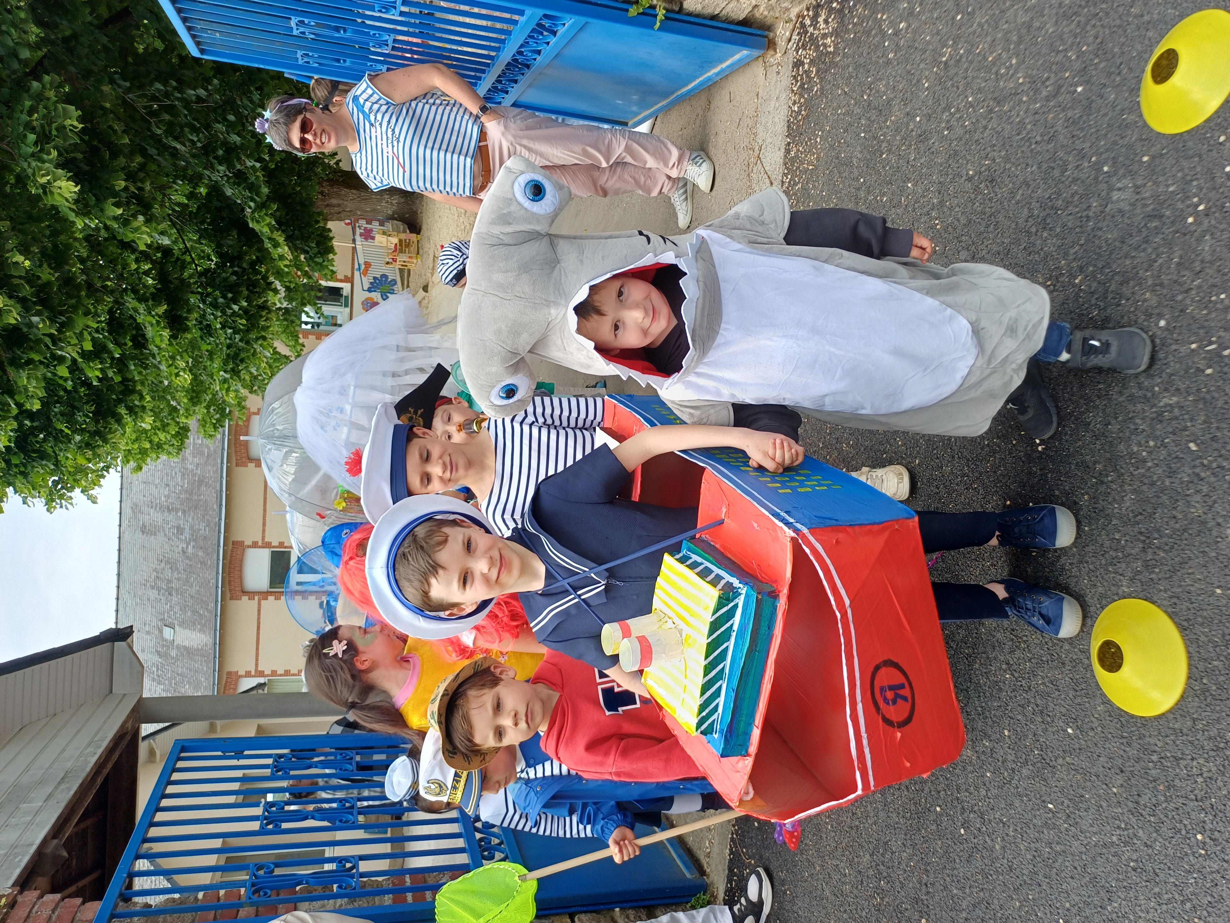 Un beau défilé dans les rues avec les plus jeunes sur un char joliment décoré par les membres de l’APEL.