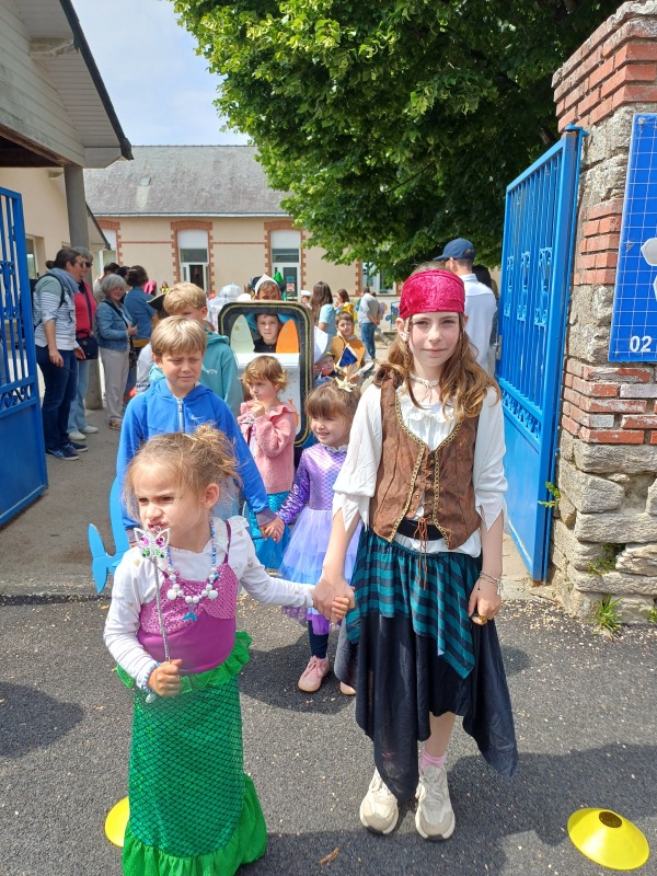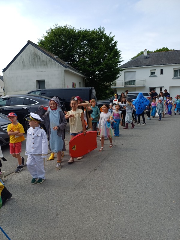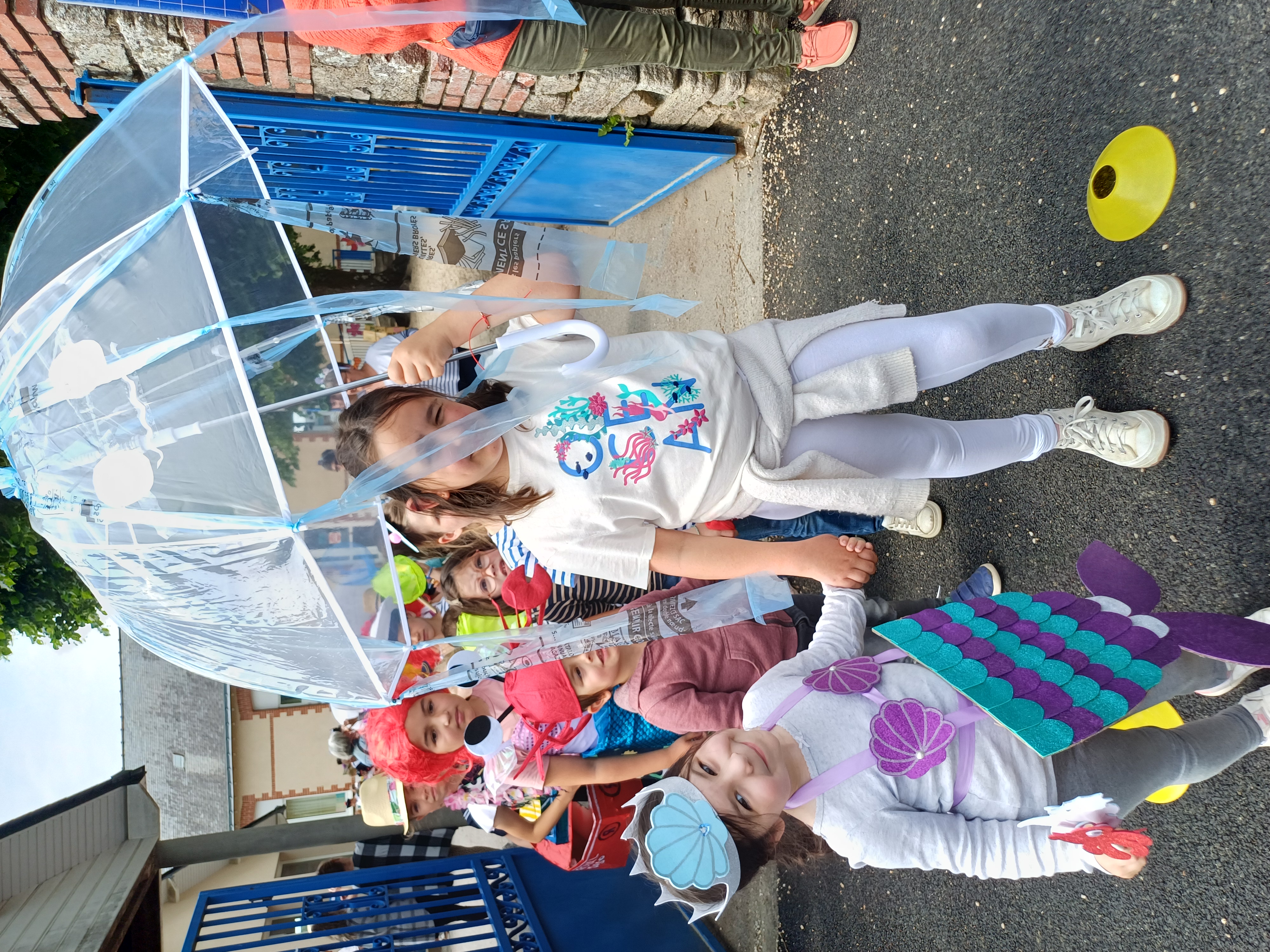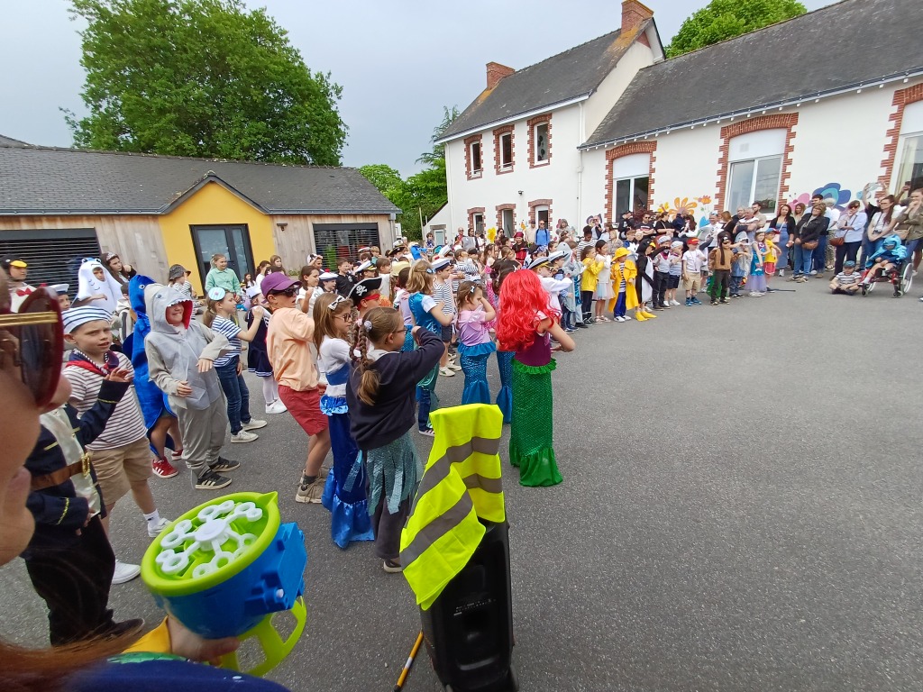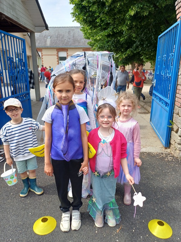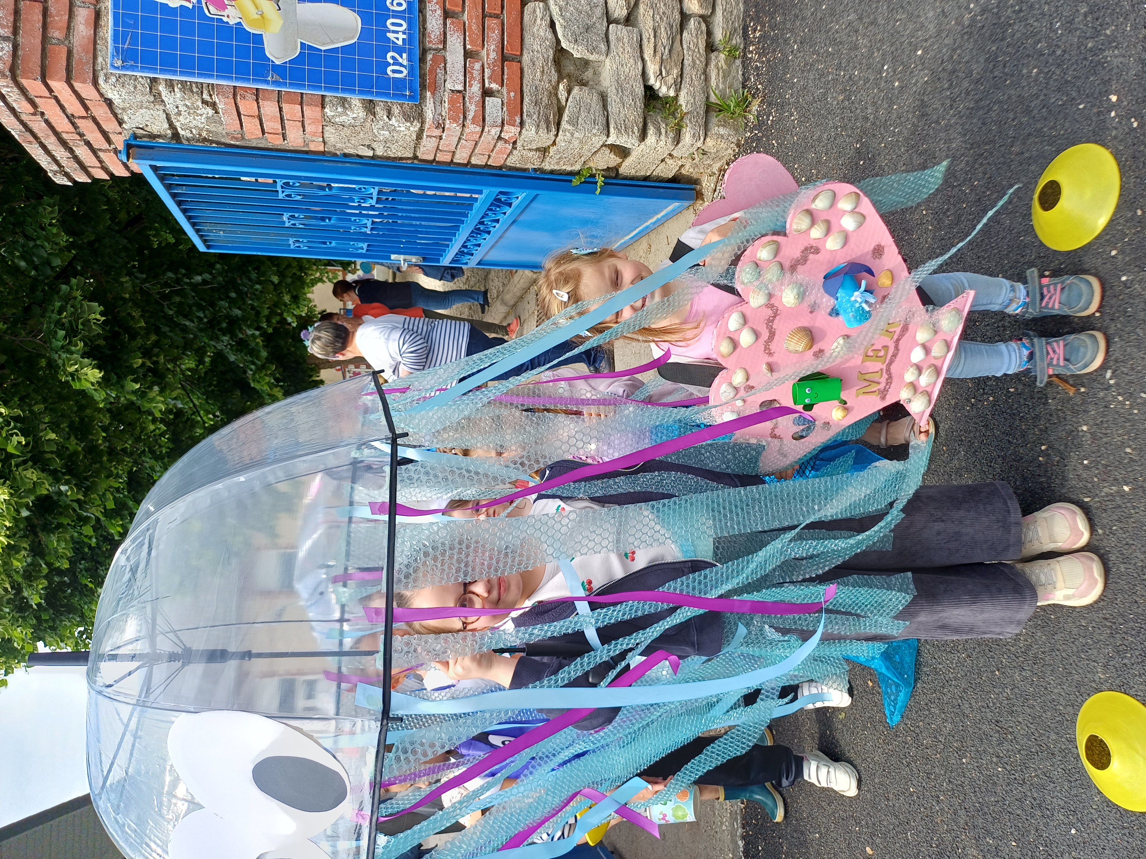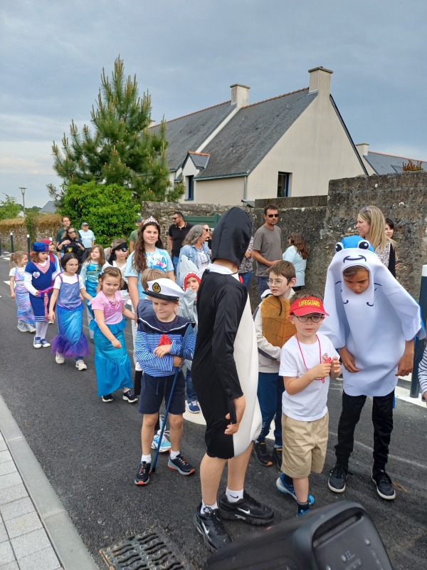 Un beau défilé dans les rues avec les plus jeunes sur un char joliment décoré par les membres de l’APEL.