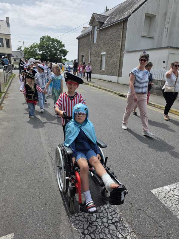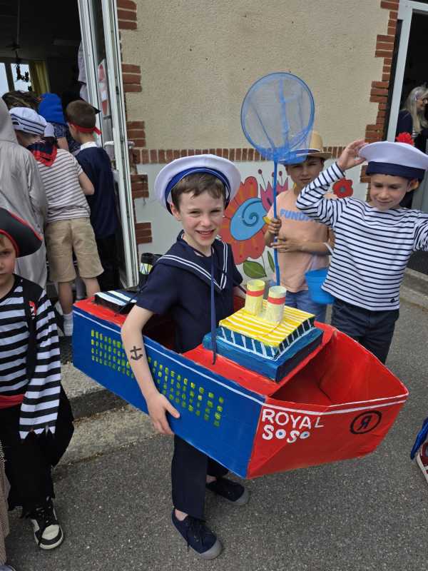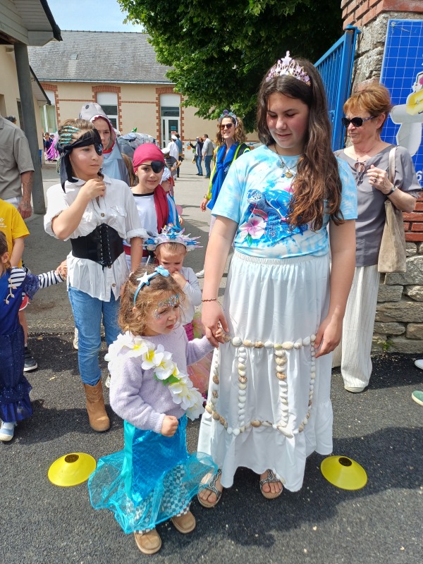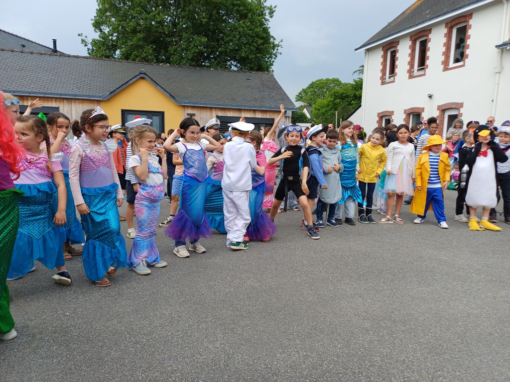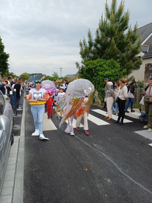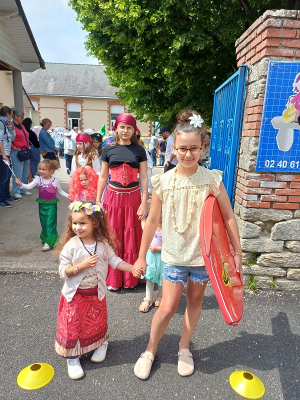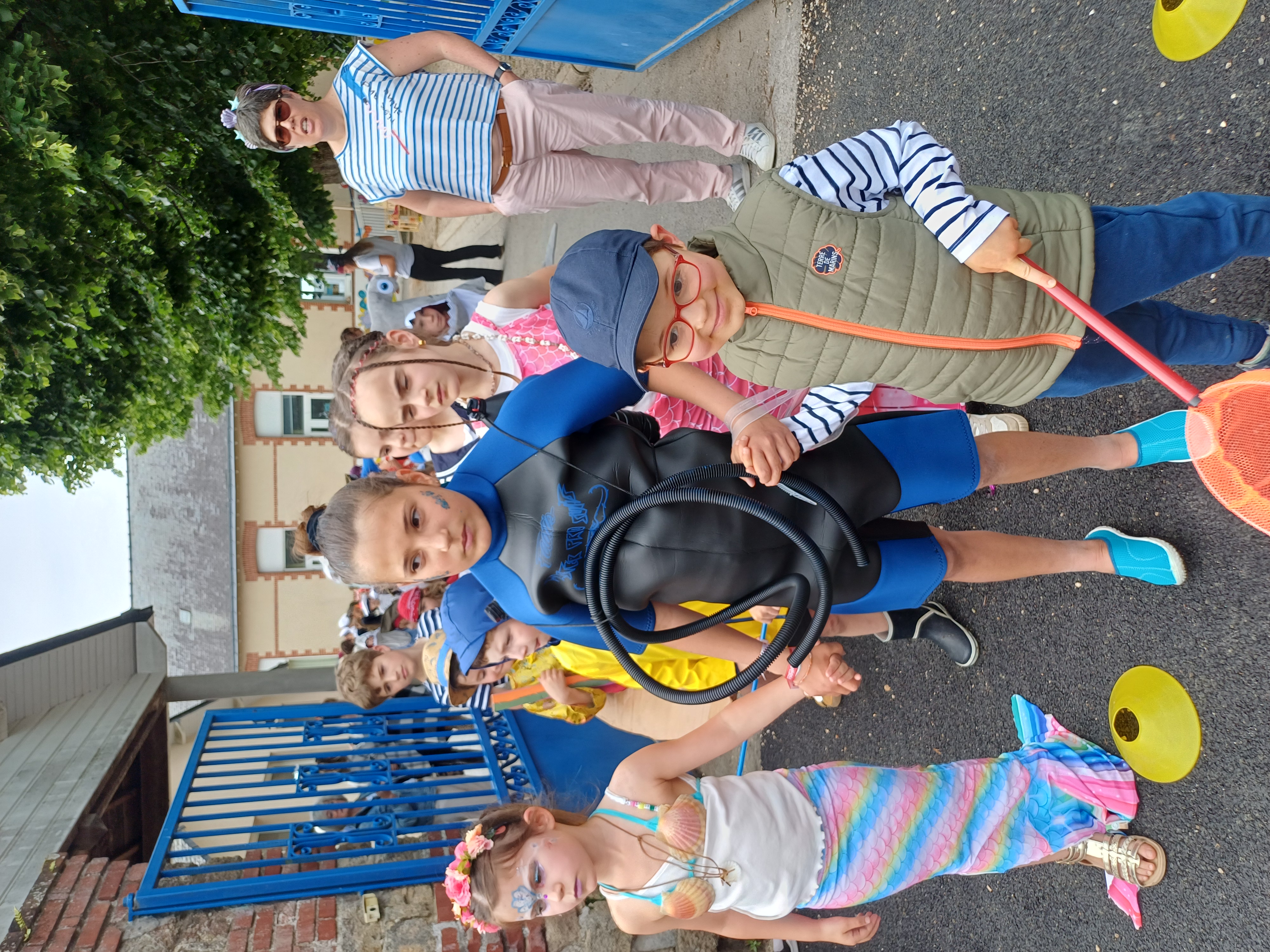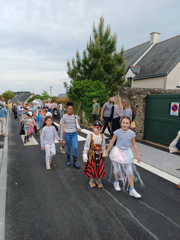 Un beau défilé dans les rues avec les plus jeunes sur un char joliment décoré par les membres de l’APEL.