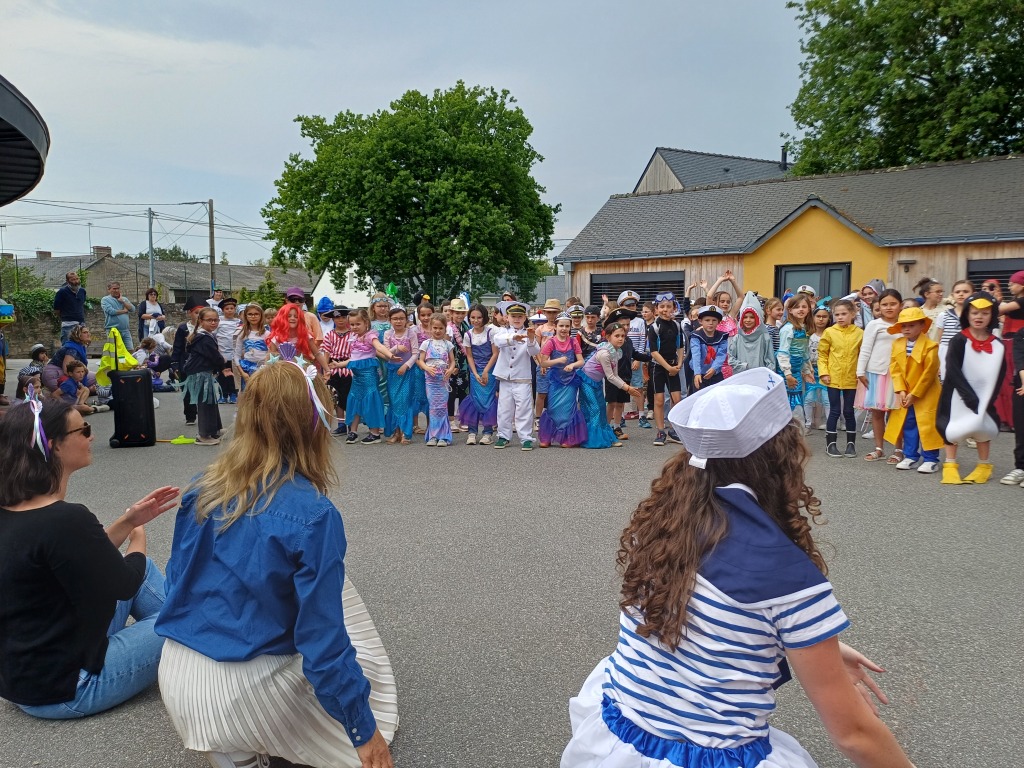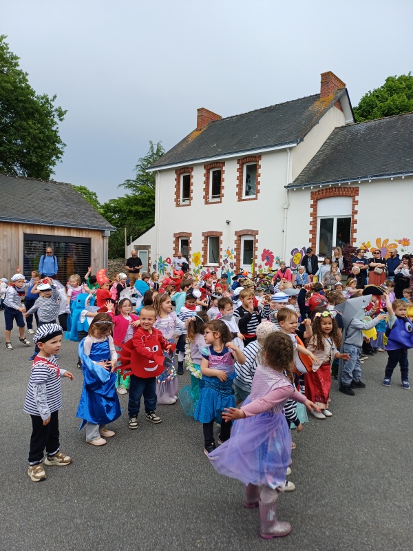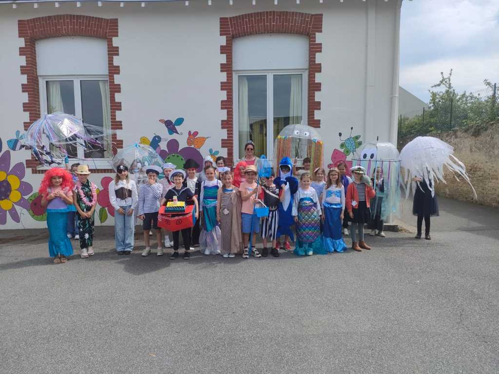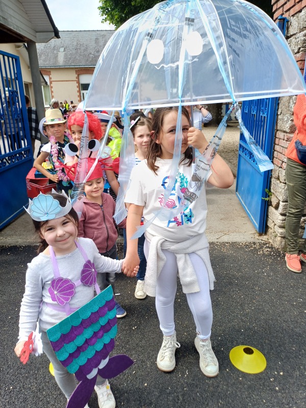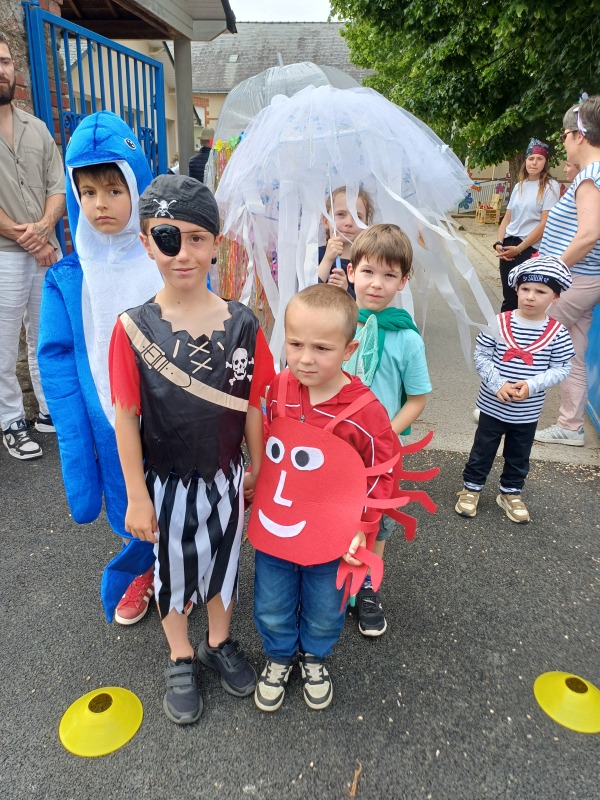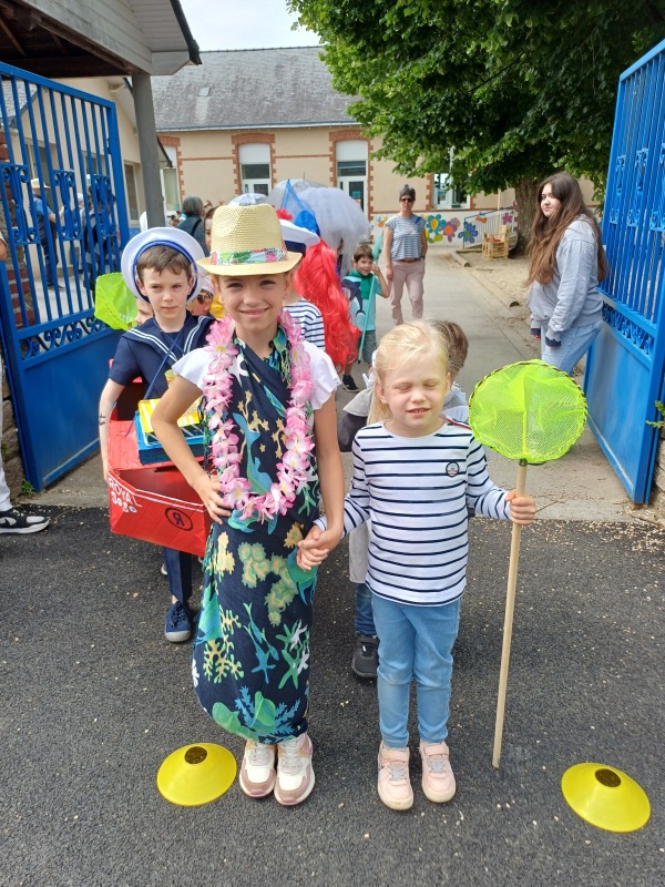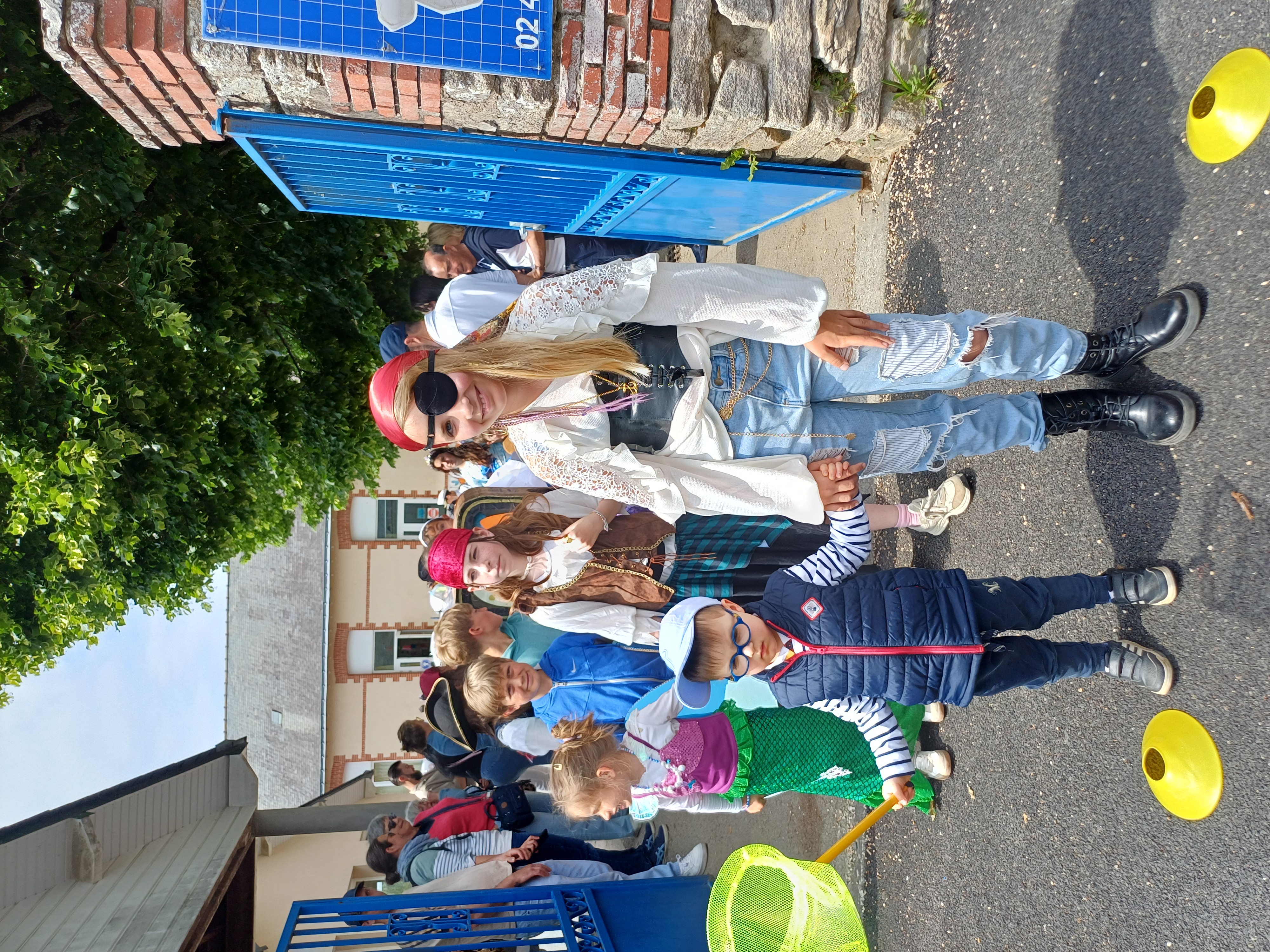 Un beau défilé dans les rues avec les plus jeunes sur un char joliment décoré par les membres de l’APEL.